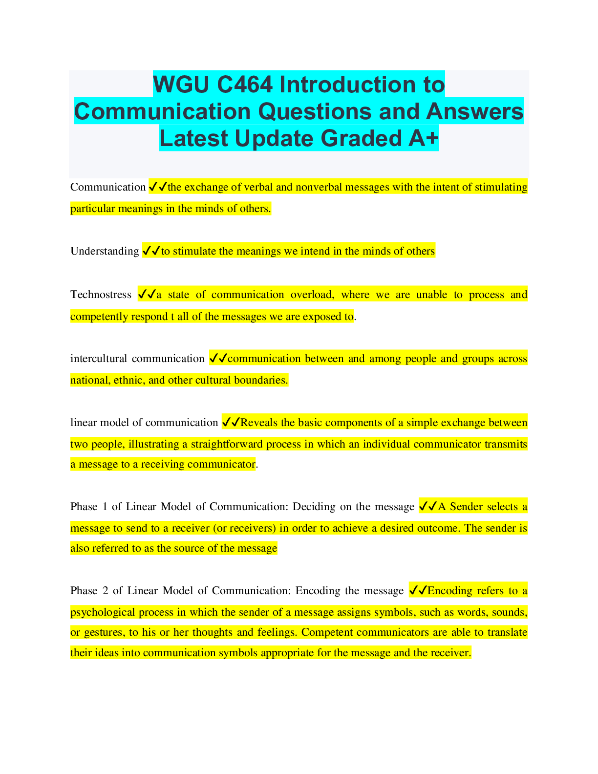Communication > EXAM > WGU C464 Introduction to Communication Questions and Answers Latest Update Graded A+ (All)