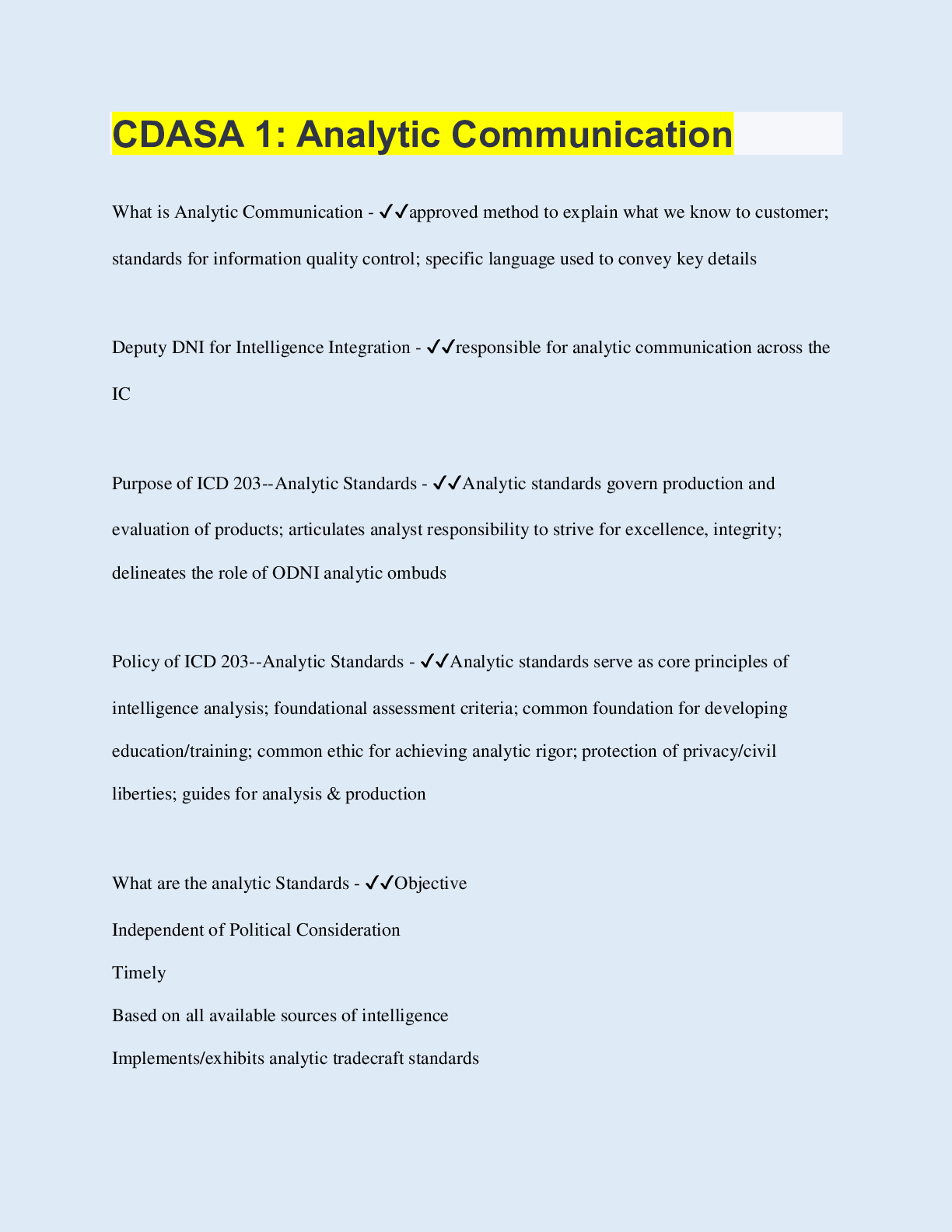 Communication > QUESTIONS & ANSWERS > CDASA 1: Analytic Communication (All)
