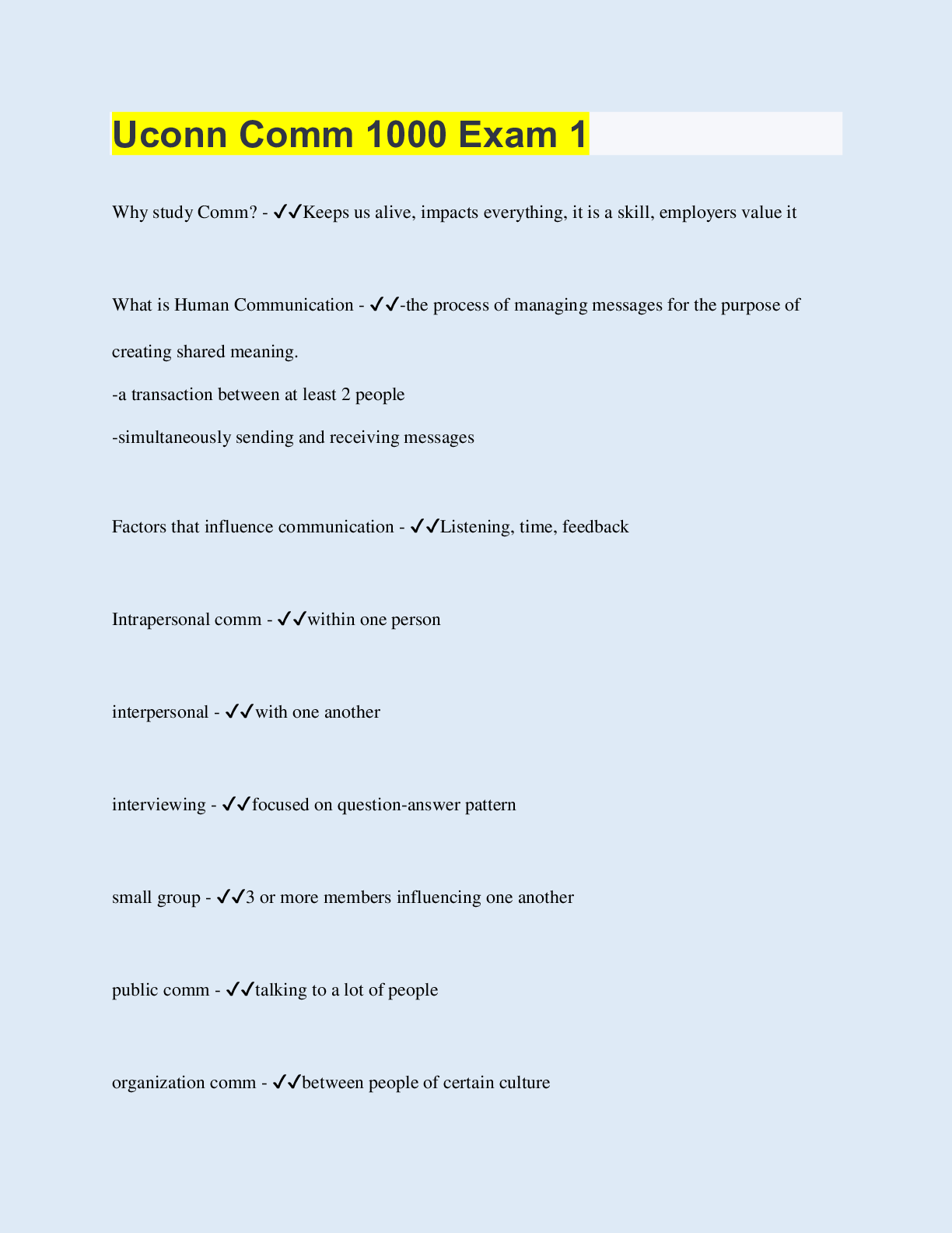 Communication > QUESTIONS & ANSWERS > Uconn Comm 1000 Exam 1 (All)