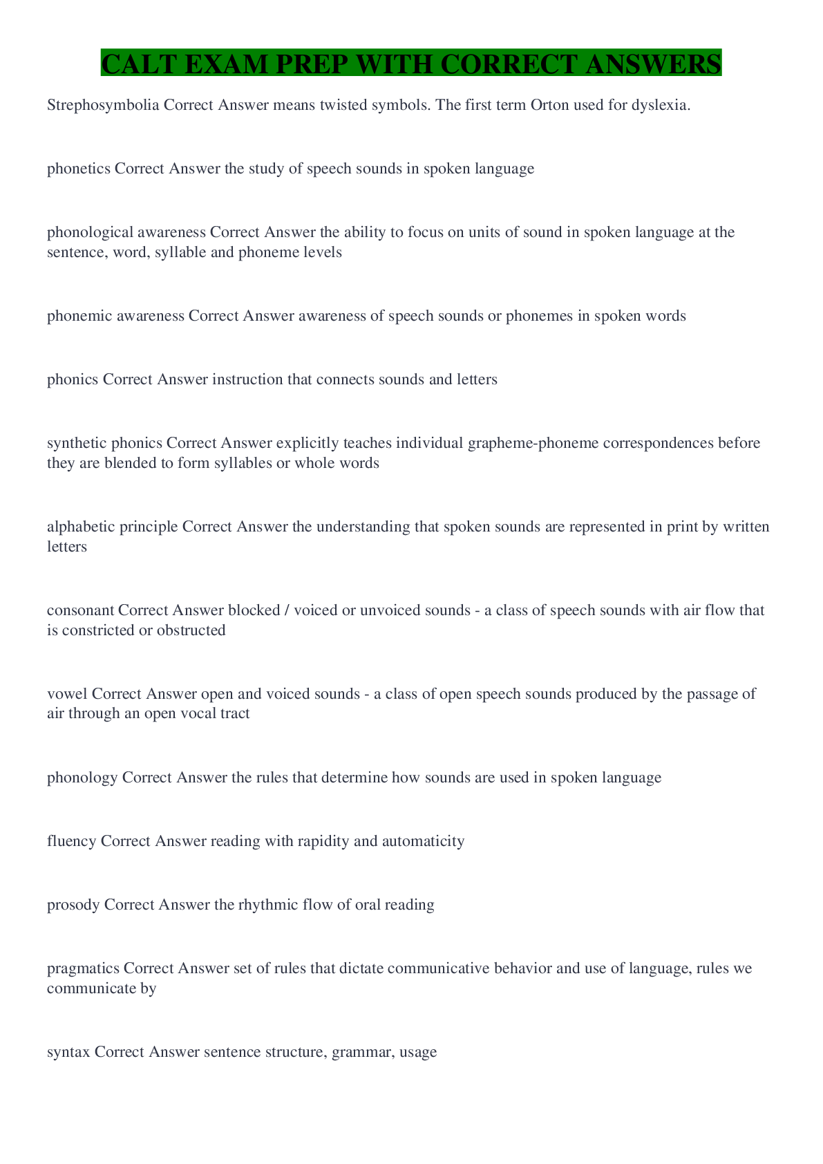 Communication > QUESTIONS & ANSWERS > CALT EXAM PREP WITH CORRECT ANSWERS (All)