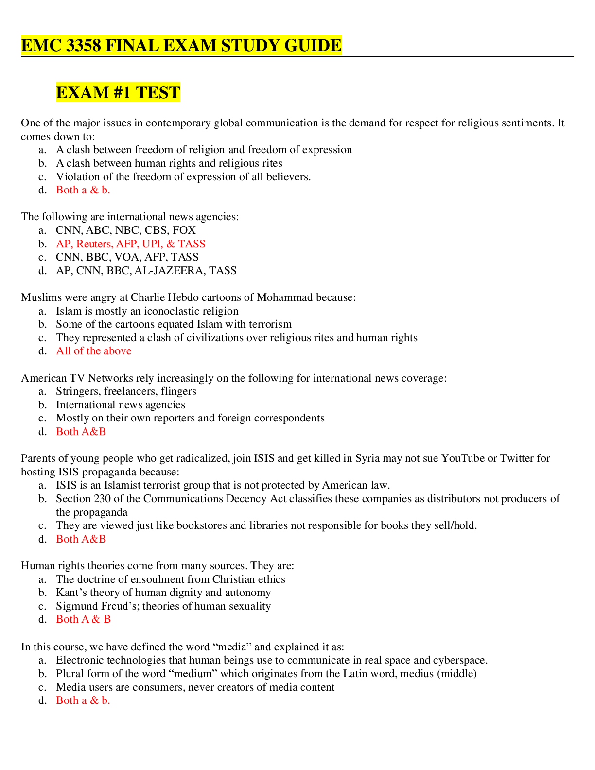 Communication > EXAM > EMC 3358 FINAL EXAM STUDY GUIDE EXAM #1 TEST (All)