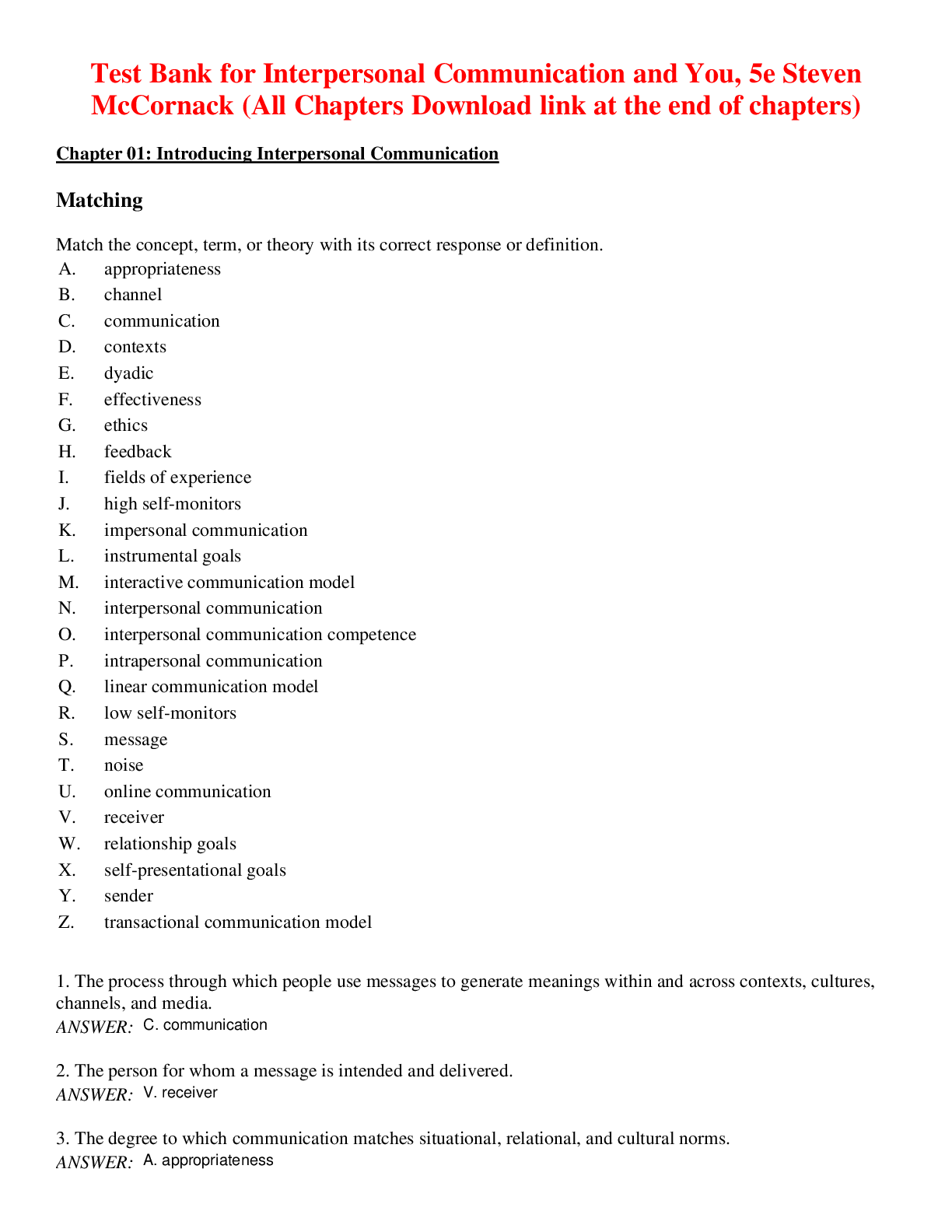 Communication > TEST BANKS > Interpersonal Communication and You, 5e Steven McCornack (Test Bank) (All)