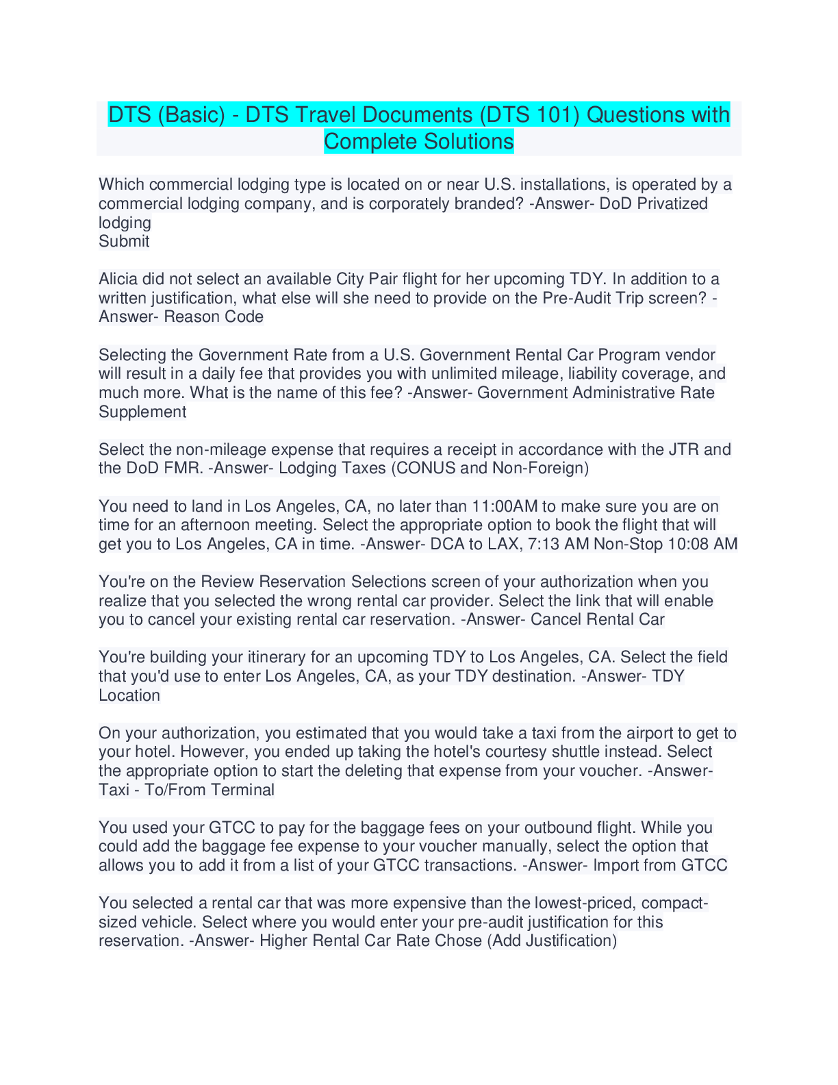 Communication > QUESTIONS & ANSWERS > DTS Basic - DTS Travel Documents _ DTS 101 | Questions with Complete Solutions (All)