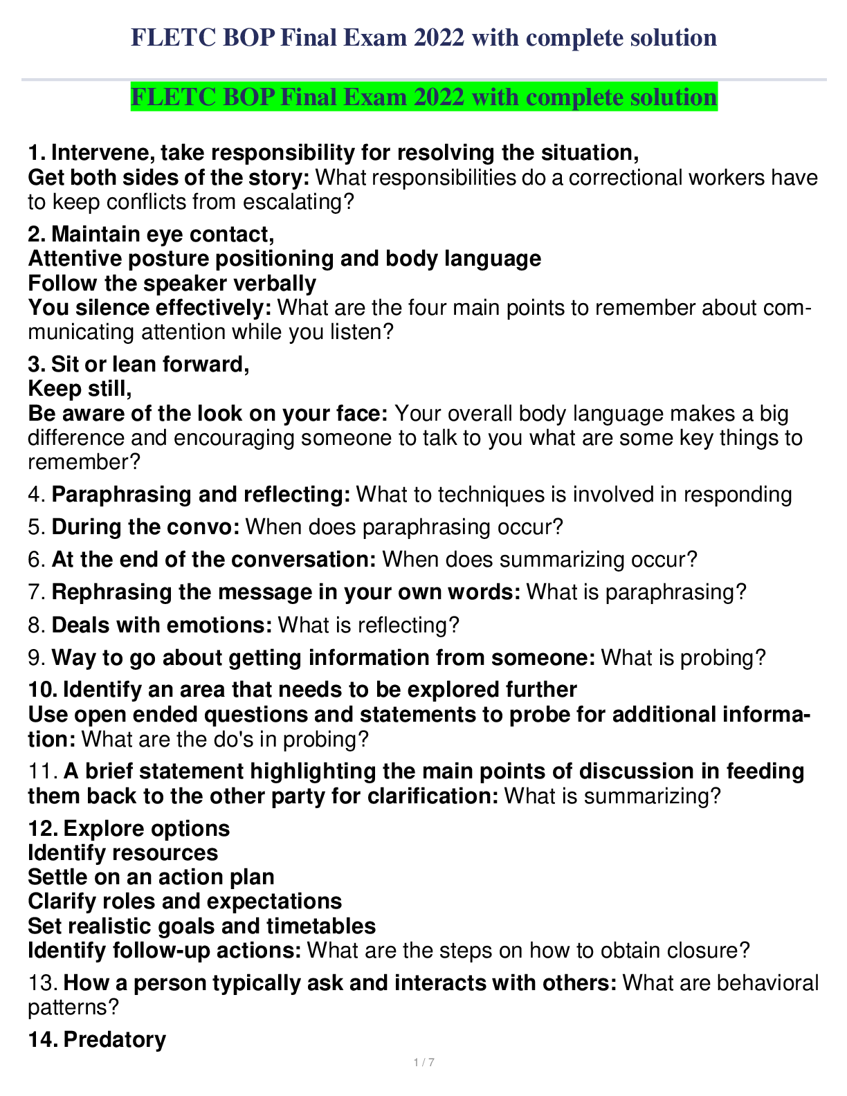 Communication > QUESTIONS & ANSWERS > FLETC BOP Final Exam 2022 with complete solution (All)