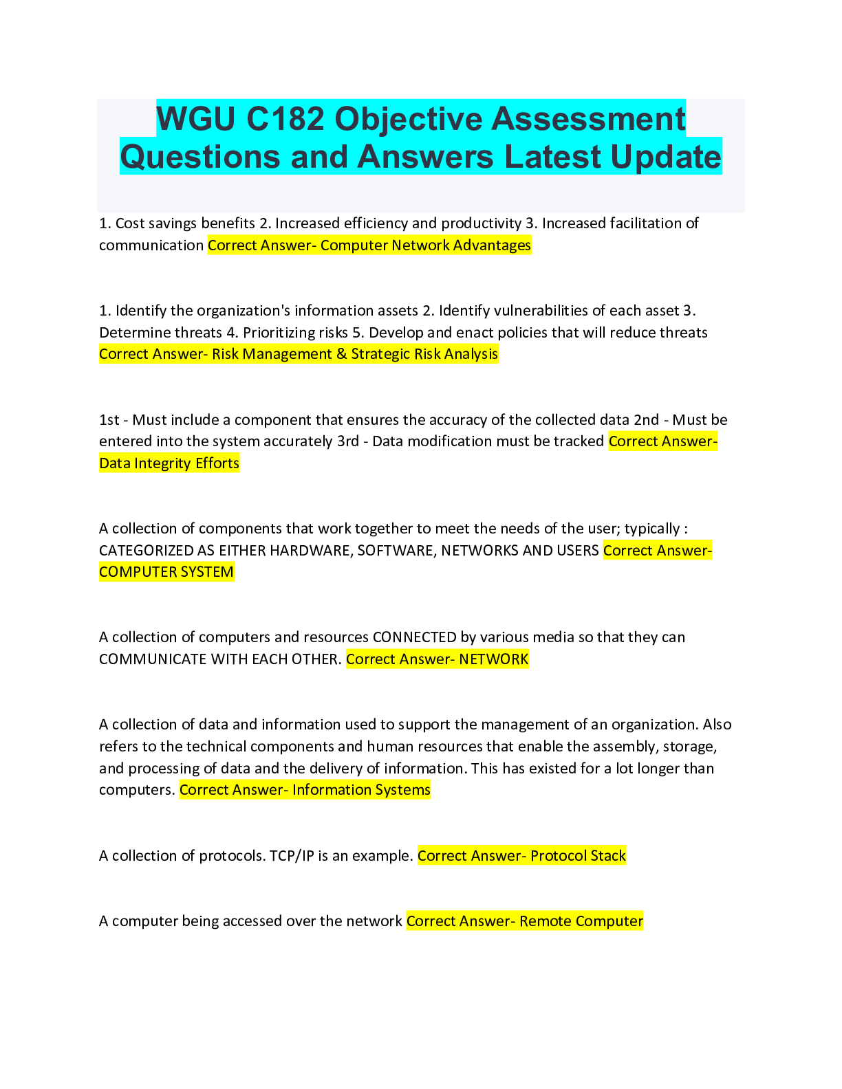 Communication > EXAMs > WGU C182 Objective Assessment Questions and Answers Latest Update (All)