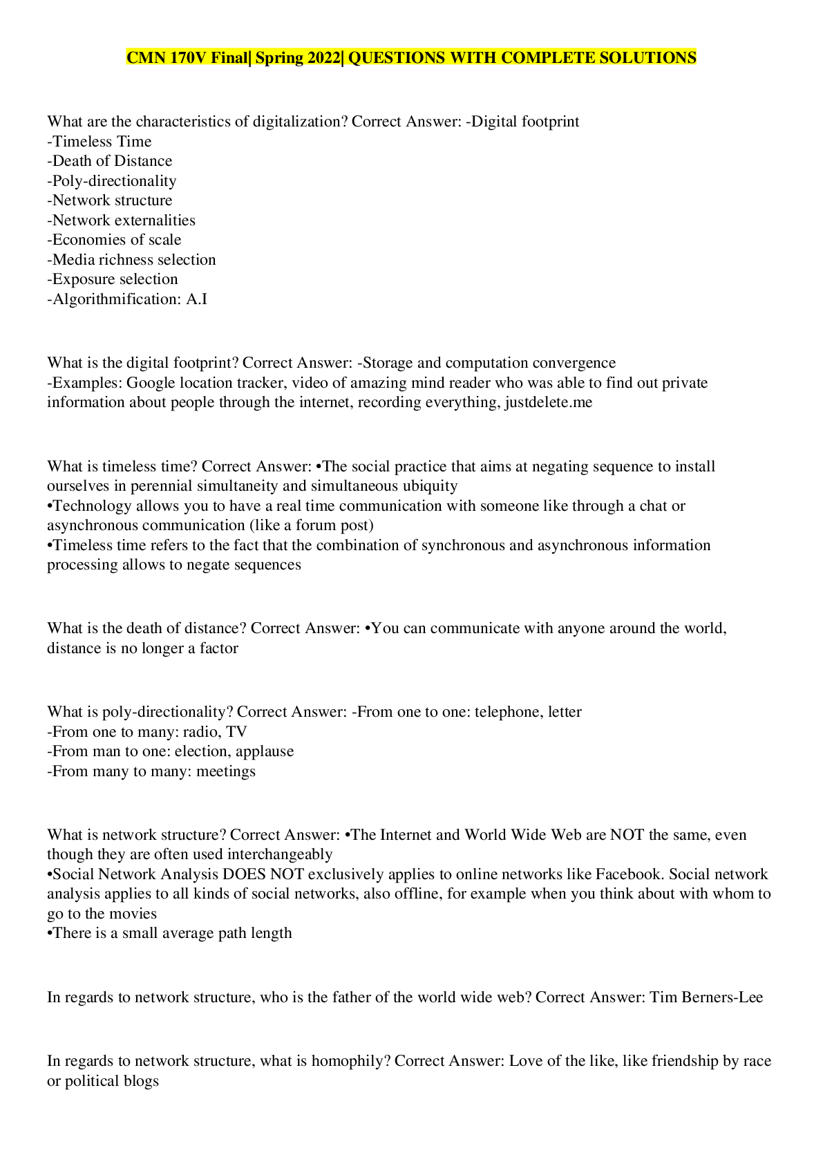 Communication > EXAMs > CMN 170V Final| Spring 2022| QUESTIONS WITH COMPLETE SOLUTIONS (All)