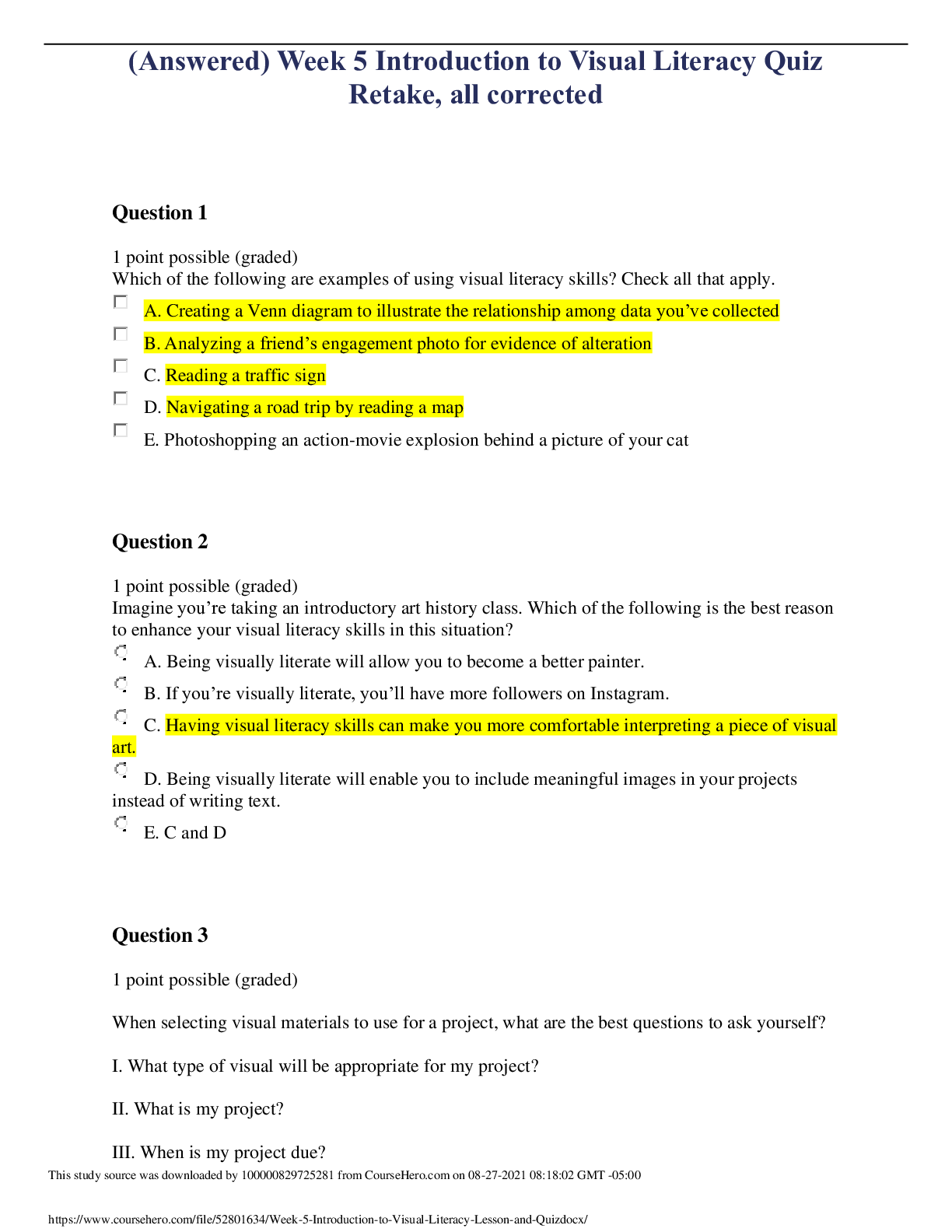 Communication > EXAMs > (Answered) Week 5 Introduction to Visual Literacy Quiz Retake, all corrected (All)