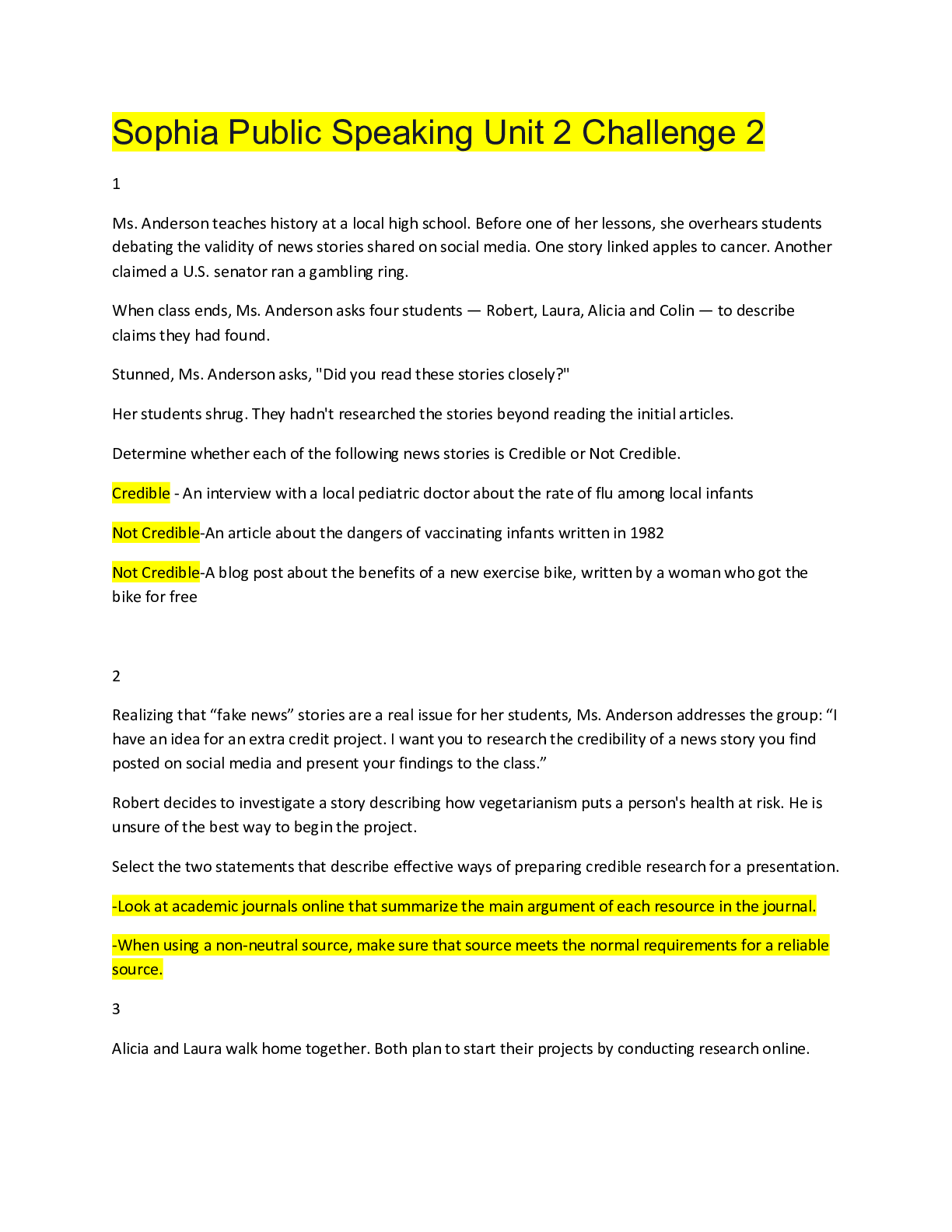 Communication > EXAM > Sophia Public Speaking Unit 2 Challenge 3,100% CORRECT (All)