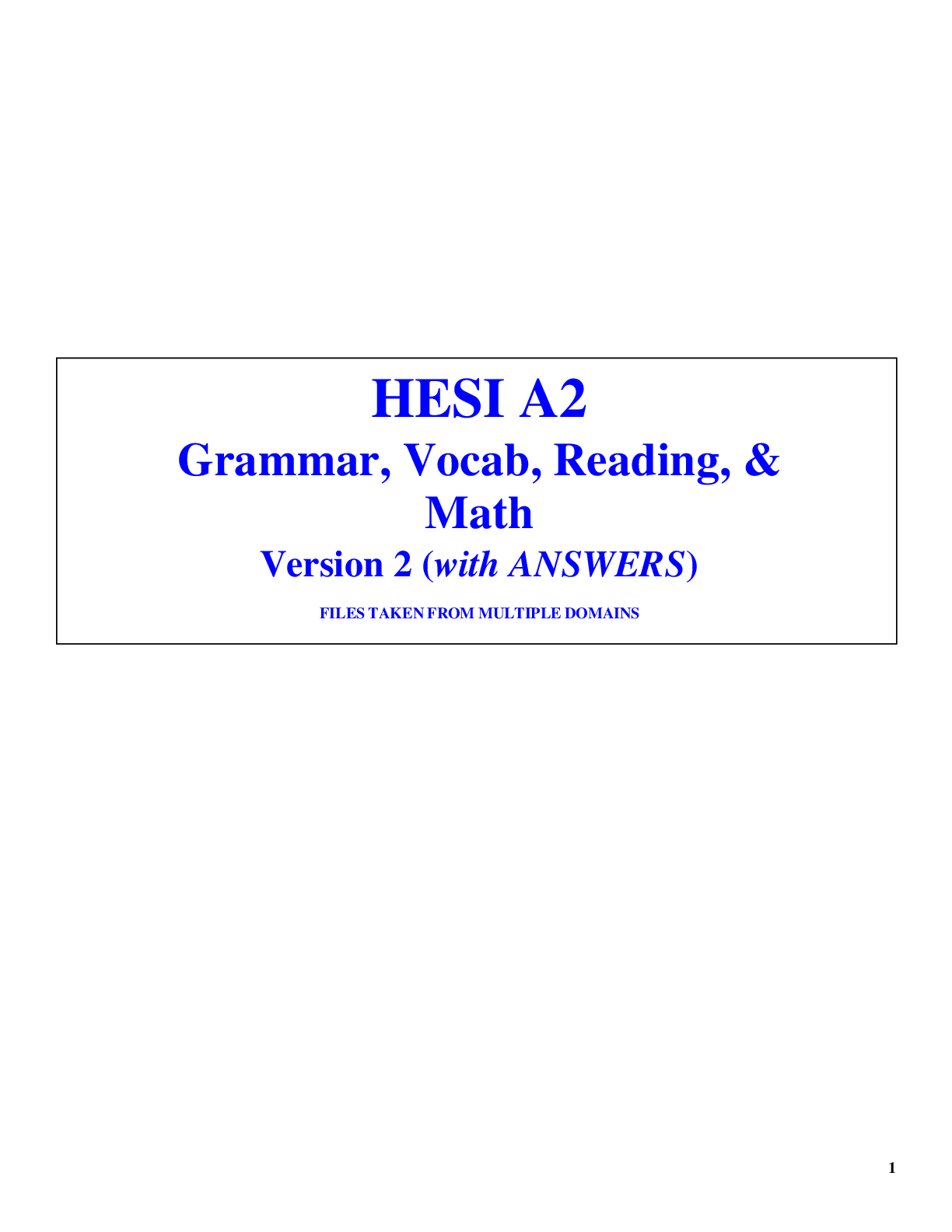 Communication > EXAMs > HESI A2 Grammar, Vocab, Reading, & Math Version 2 (with ANSWERS) FILES TAKEN FROM (All)