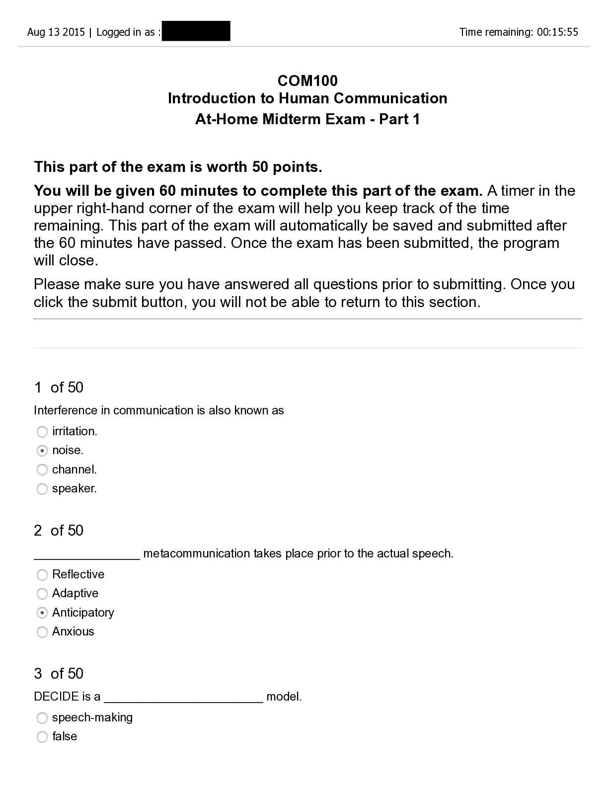 Communication > EXAMs > COM100 introduction to Human Communication At-Home Midterm Exam - Part 1 (All)