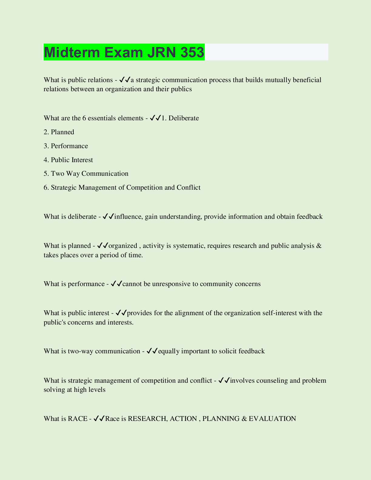 Communication > EXAMs > Midterm Exam JRN 353 | 80 Questions with 100% Correct Answers | Updated & Verified (All)