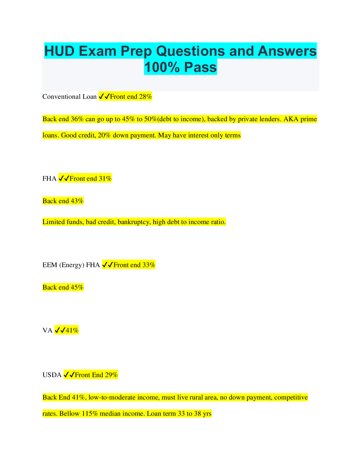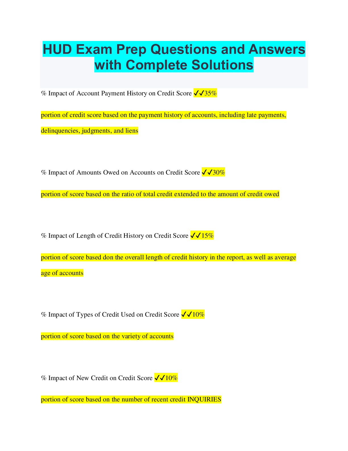 Urban Studies > QUESTIONS & ANSWERS > HUD Exam Prep Questions and Answers with Complete Solutions (All)