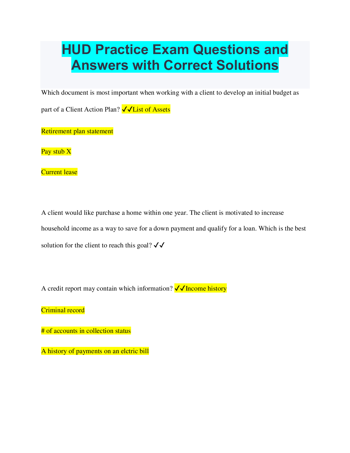 Urban Studies > QUESTIONS & ANSWERS > HUD Practice Exam Questions and Answers with Correct Solutions (All)