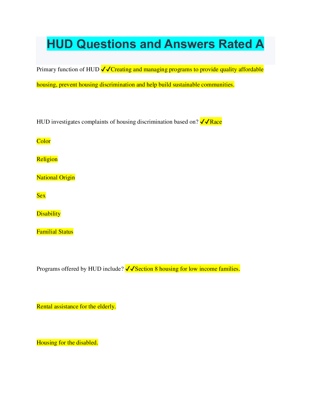 Urban Studies > QUESTIONS & ANSWERS > HUD Questions and Answers Rated A (All)