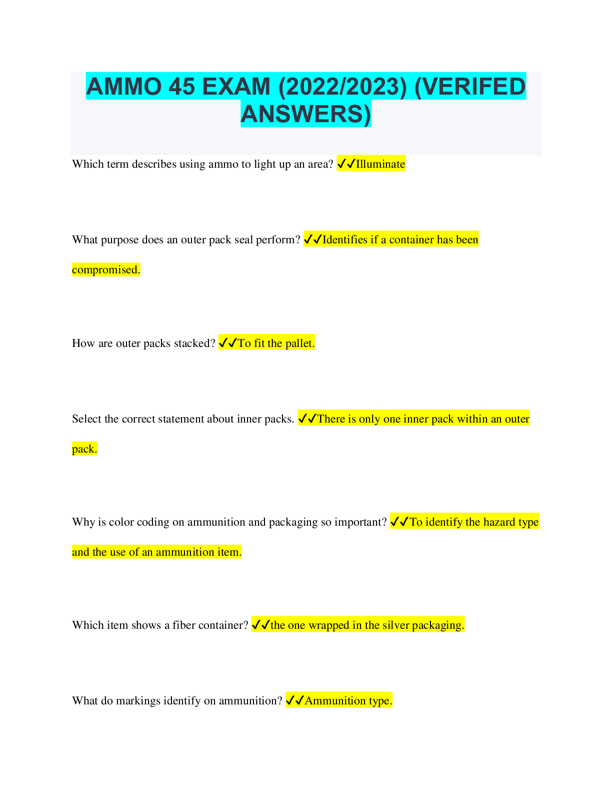 Disaster Management > QUESTIONS & ANSWERS > AMMO 45 EXAM (2022/2023) (VERIFED ANSWERS) (All)