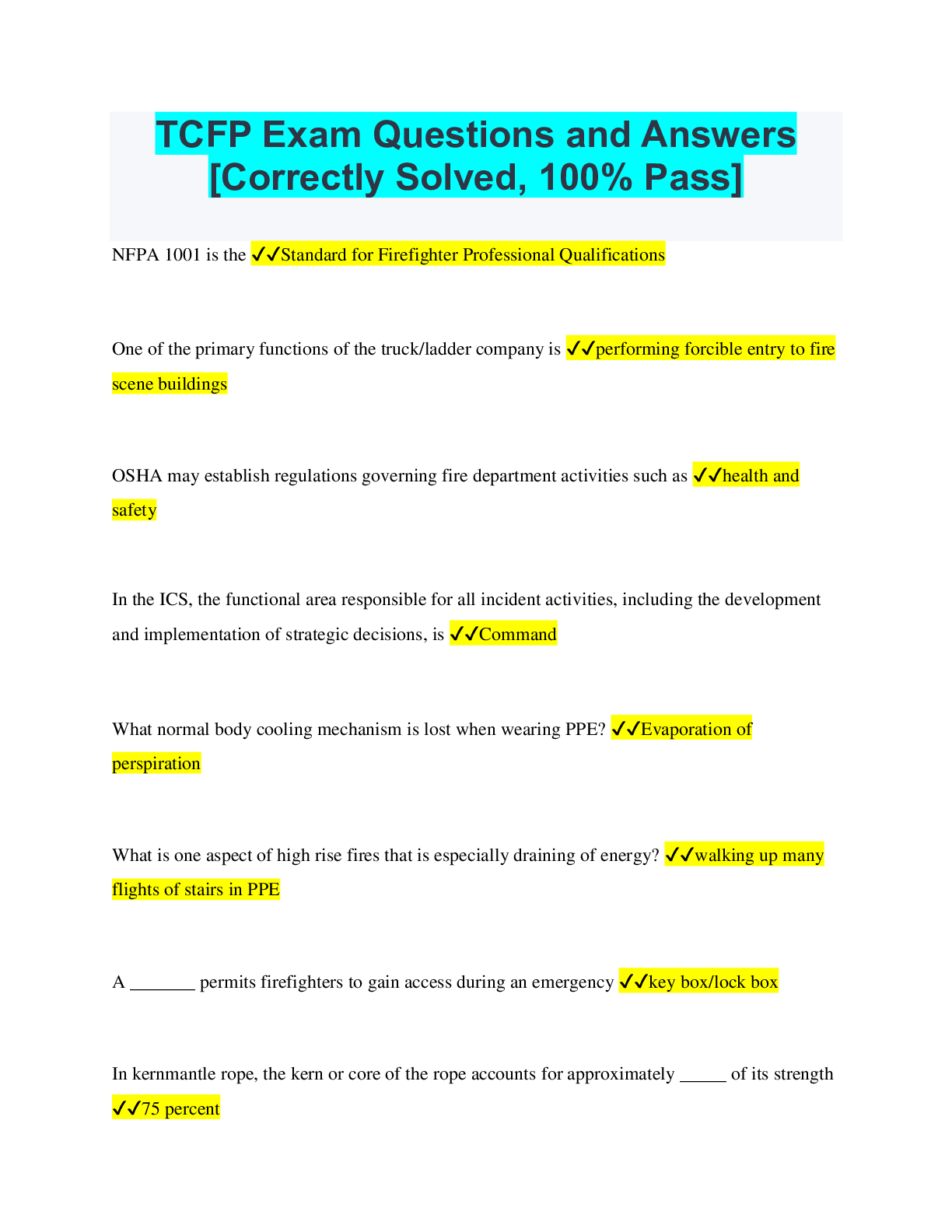 Disaster Management > QUESTIONS & ANSWERS > TCFP Exam Questions and Answers [Correctly Solved, 100% Pass] (All)