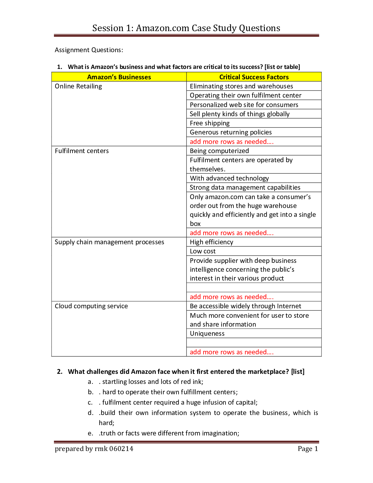 Management Information Systems (MIS) > CASE STUDY > Questions and Answers > Northeastern University - MISM 2301Session 1 - Amazon Case Homework - student version (All)