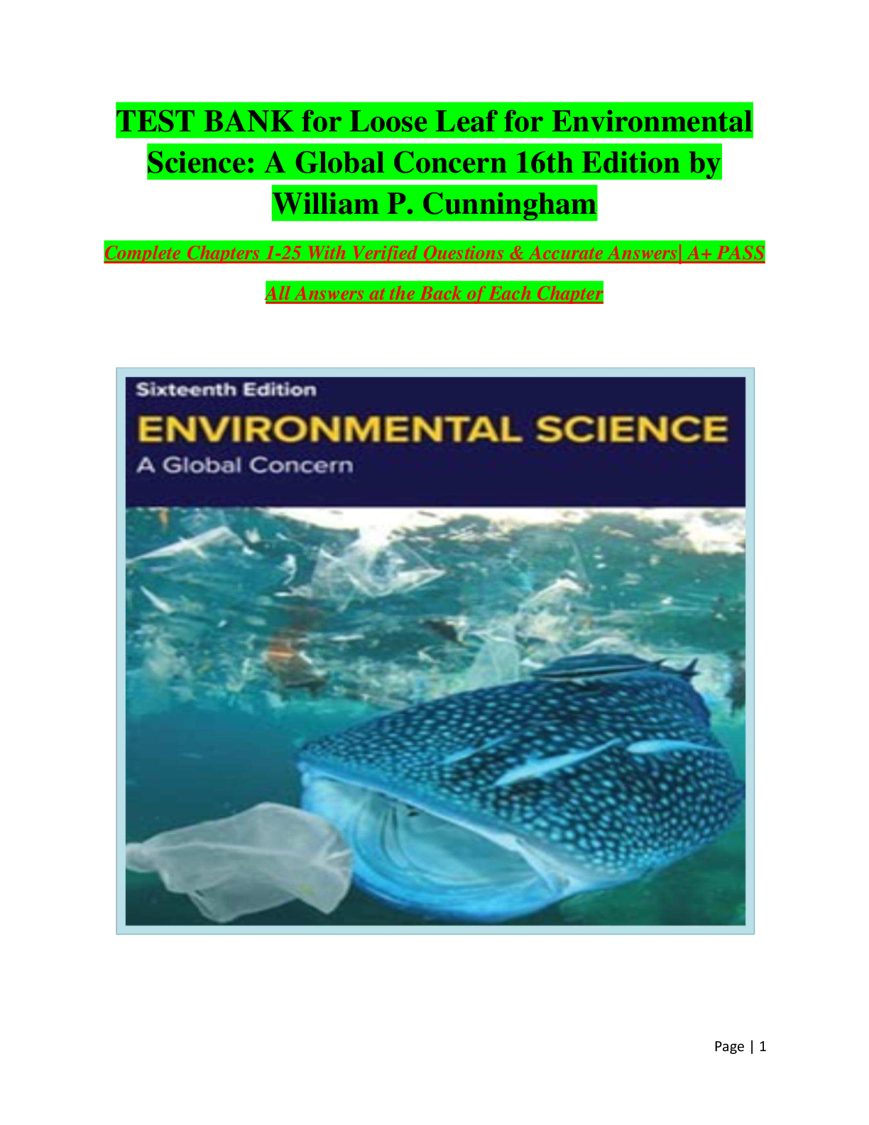 Environmental Science > TEST BANKS > TEST BANK for Loose Leaf for Environmental Science: A Global Concern 16th Edition by William P. Cunningham Complete Chapters 1 -25 (All)