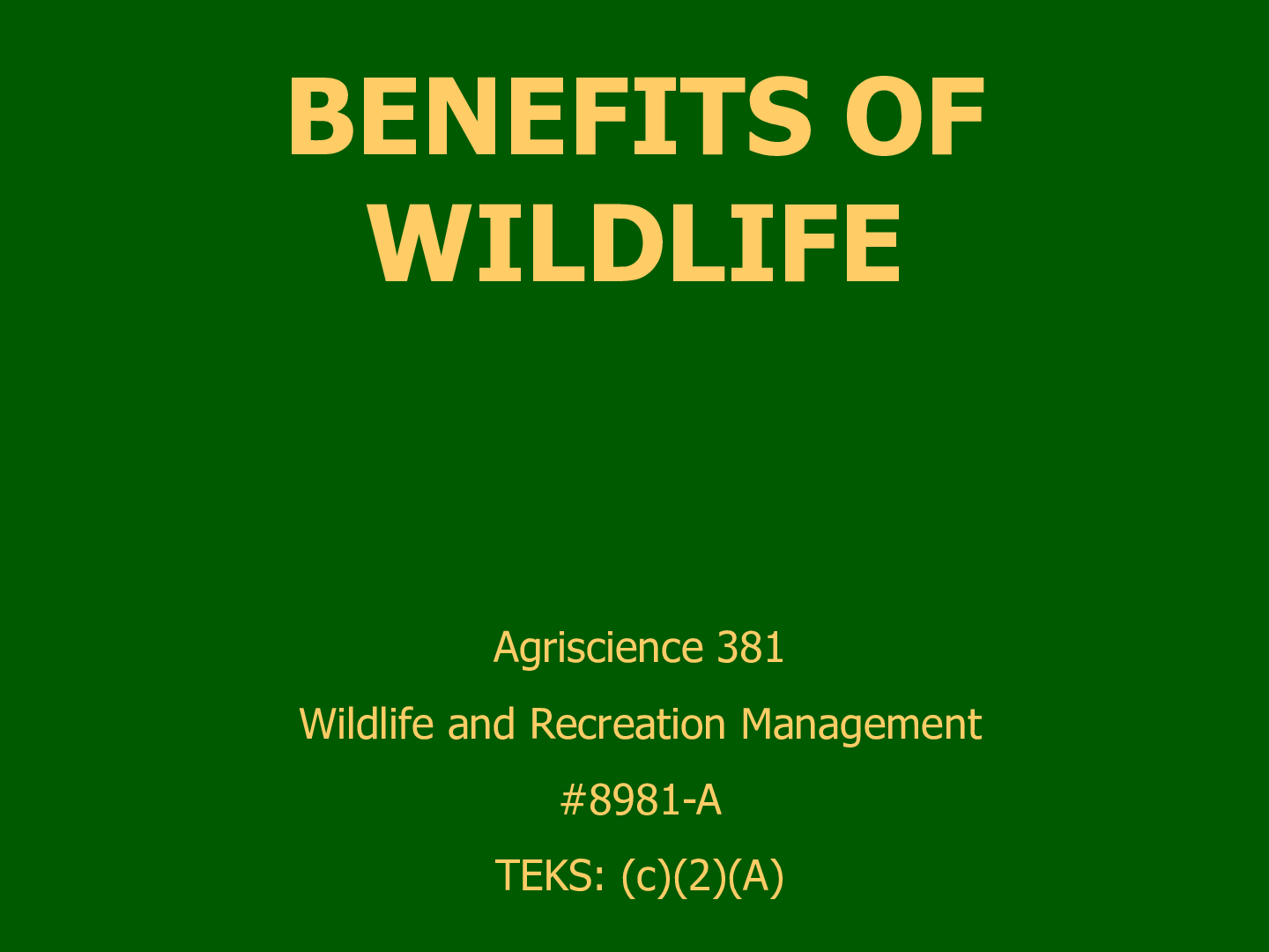 Environmental Science > QUESTIONS & ANSWERS > BENEFITS OF WILDLIFE (All)