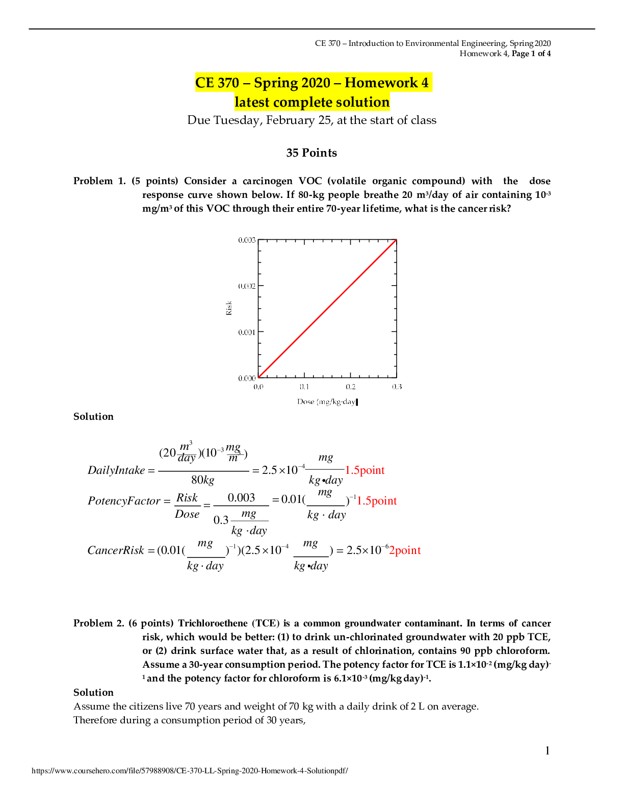 Environmental Science > QUESTIONS & ANSWERS > CE 370 – Spring 2020 – Homework 4 latest complete solution (All)