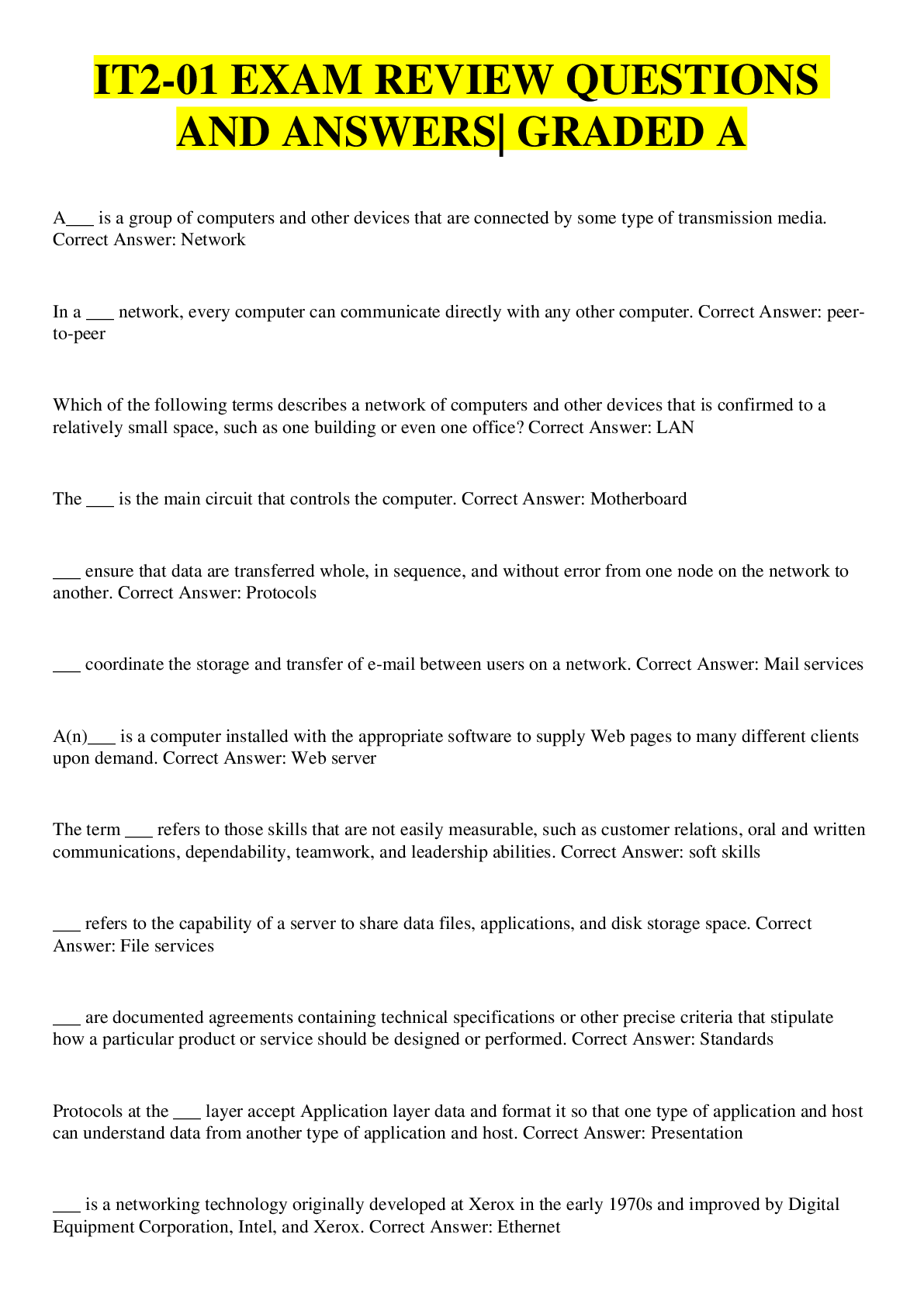 Computer Science > EXAM > IT2-01 EXAM REVIEW QUESTIONS AND ANSWERS| GRADED A (All)