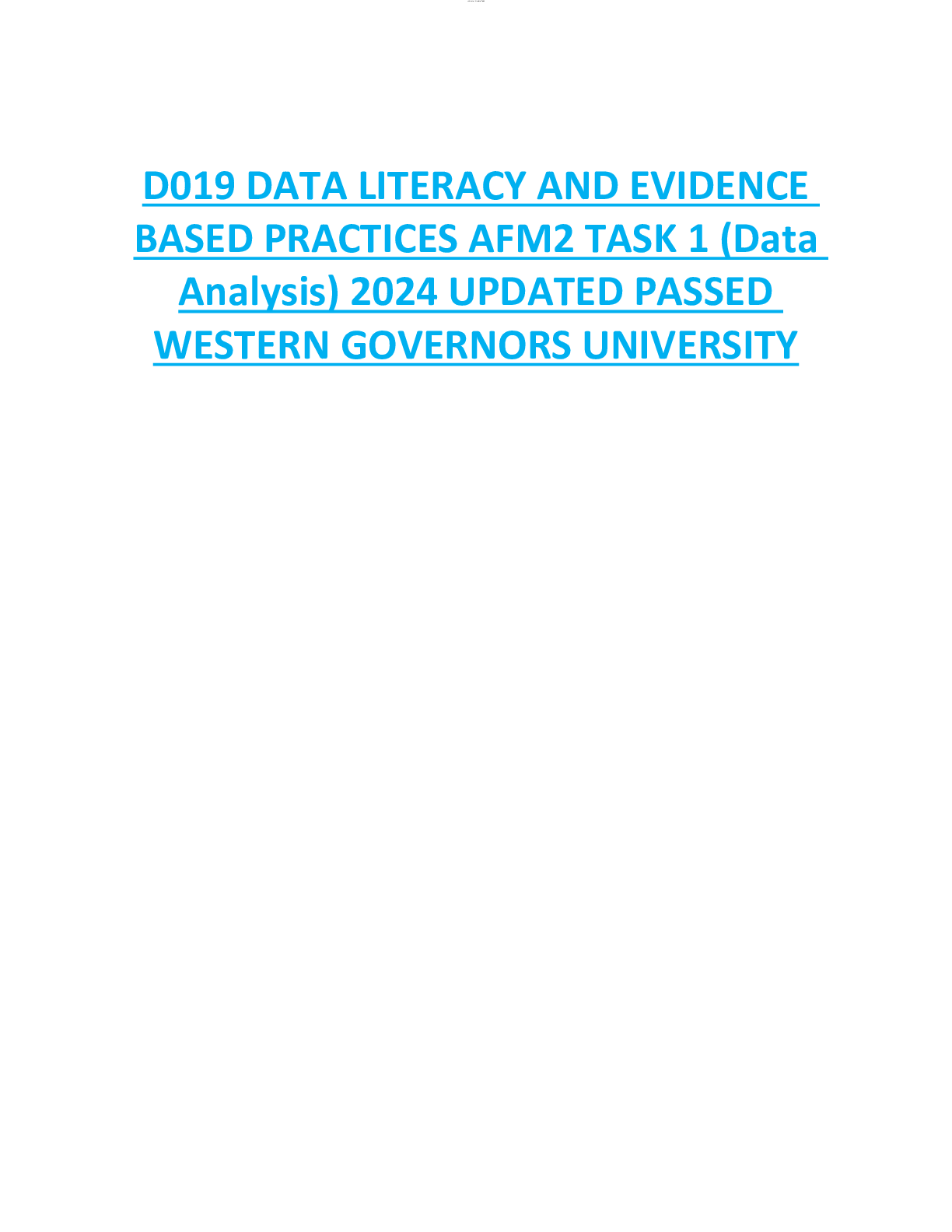 Computer Science > EXAM > D019 DATA LITERACY AND EVIDENCE BASED PRACTICES AFM2 TASK 1 (Data Analysis) 2024 UPDATED PASSED WESTERN GOVERNORS UNIVERSITY (All)