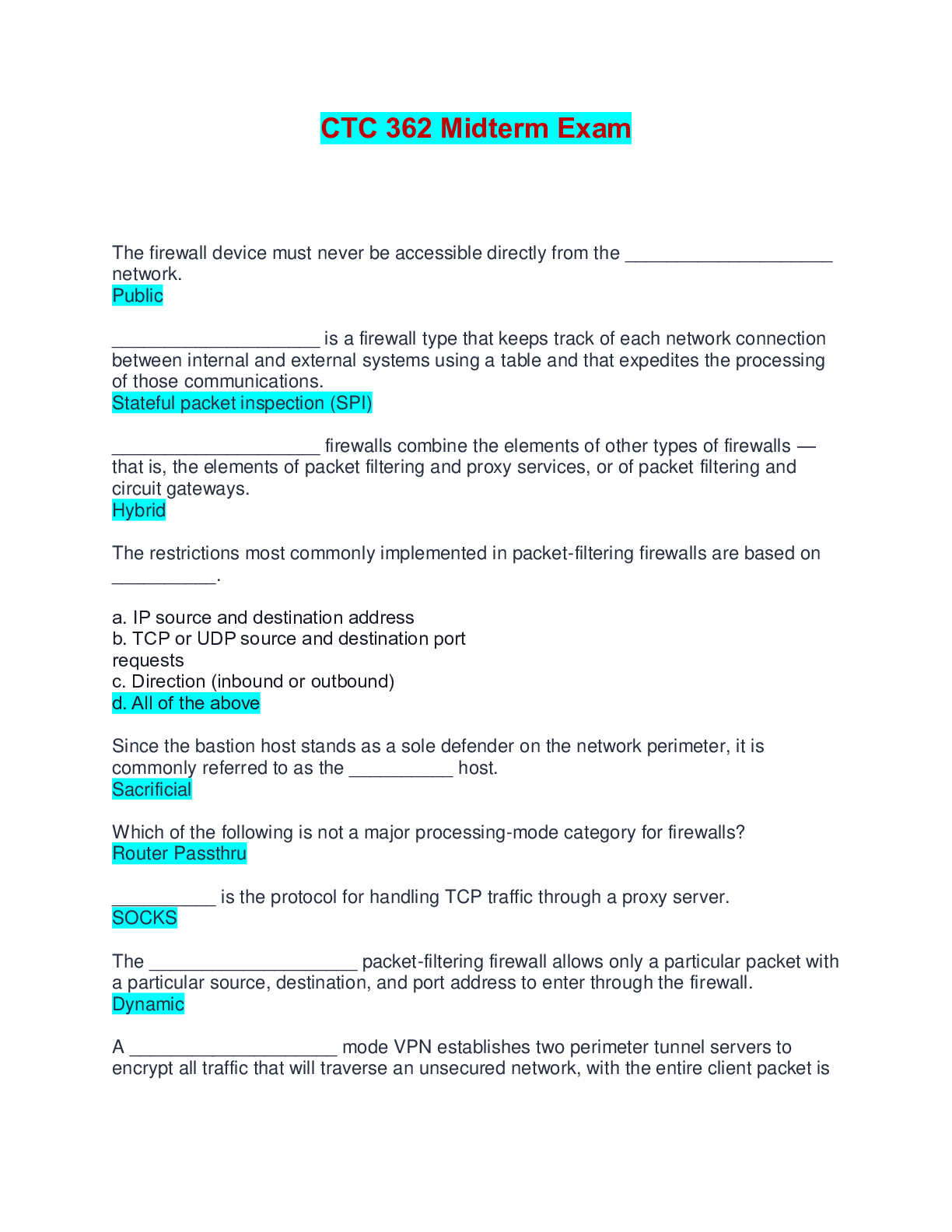 Computer Science > EXAM > CTC 362 Midterm Exam | Questions with Verified Answers (All)
