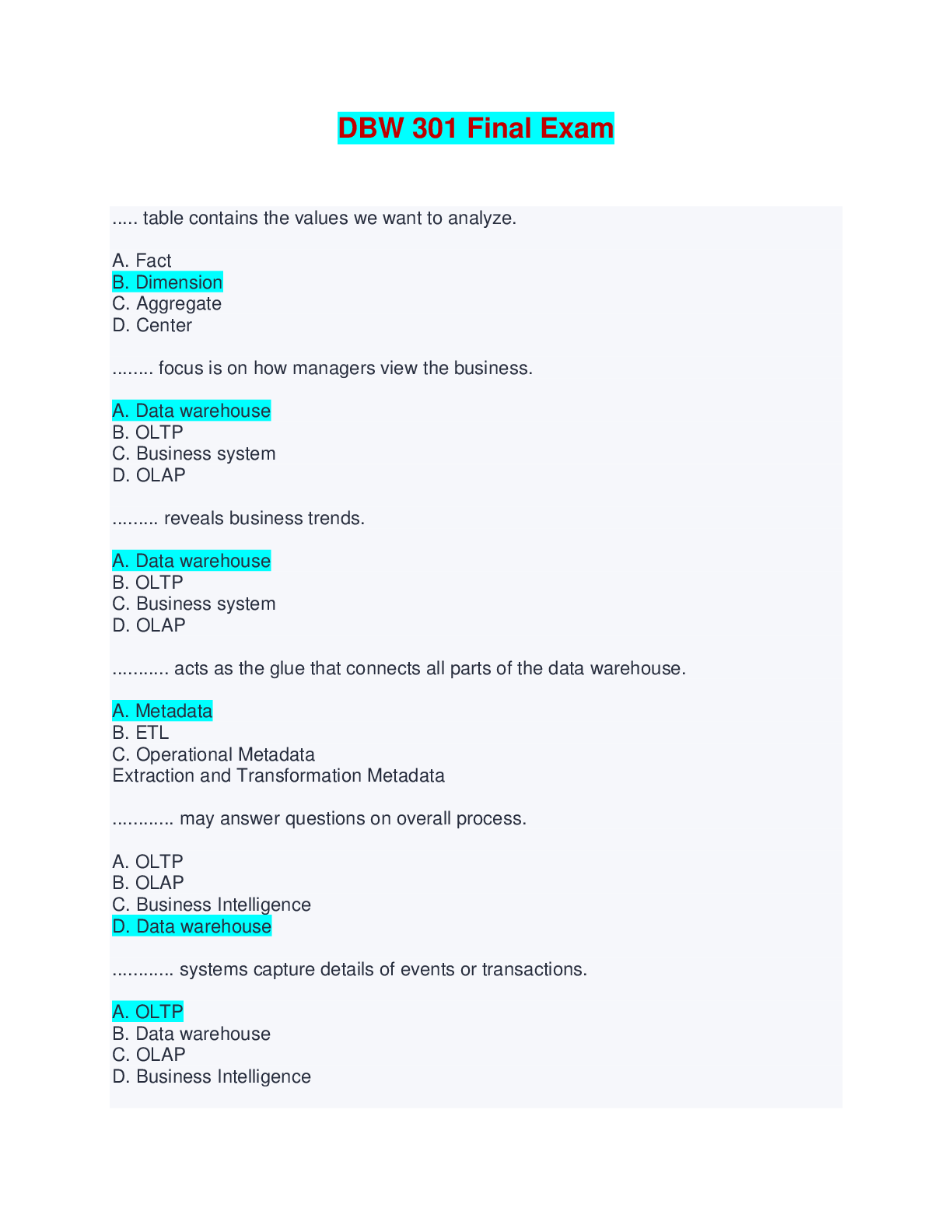 Computer Science > EXAM > DBW 301 Final Exam | Verified with 100% Correct Answers (All)