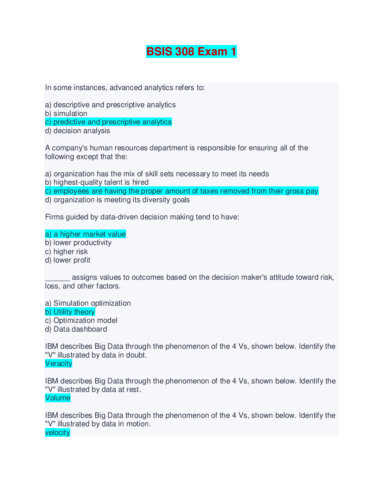 Computer Science > EXAM > BSIS 308 Exam 1 | Questions with 100% Correct Answers (All)