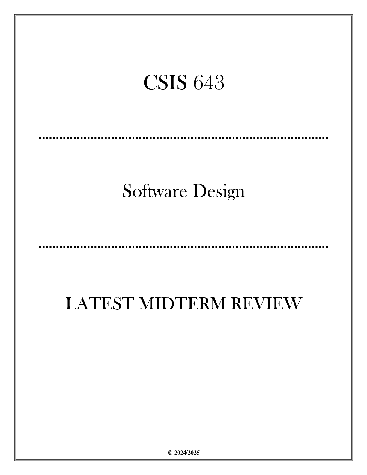 Computer Science > EXAM > (LU) CSIS 643 - Software Design - Latest Midterm Review 20242025 (All)