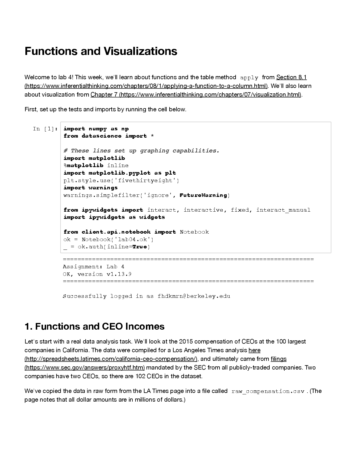 Computer Science > EXAM > Data C8 Lab 4: Functions and Visualizations | Spring 2025, Complete Solutions (All)