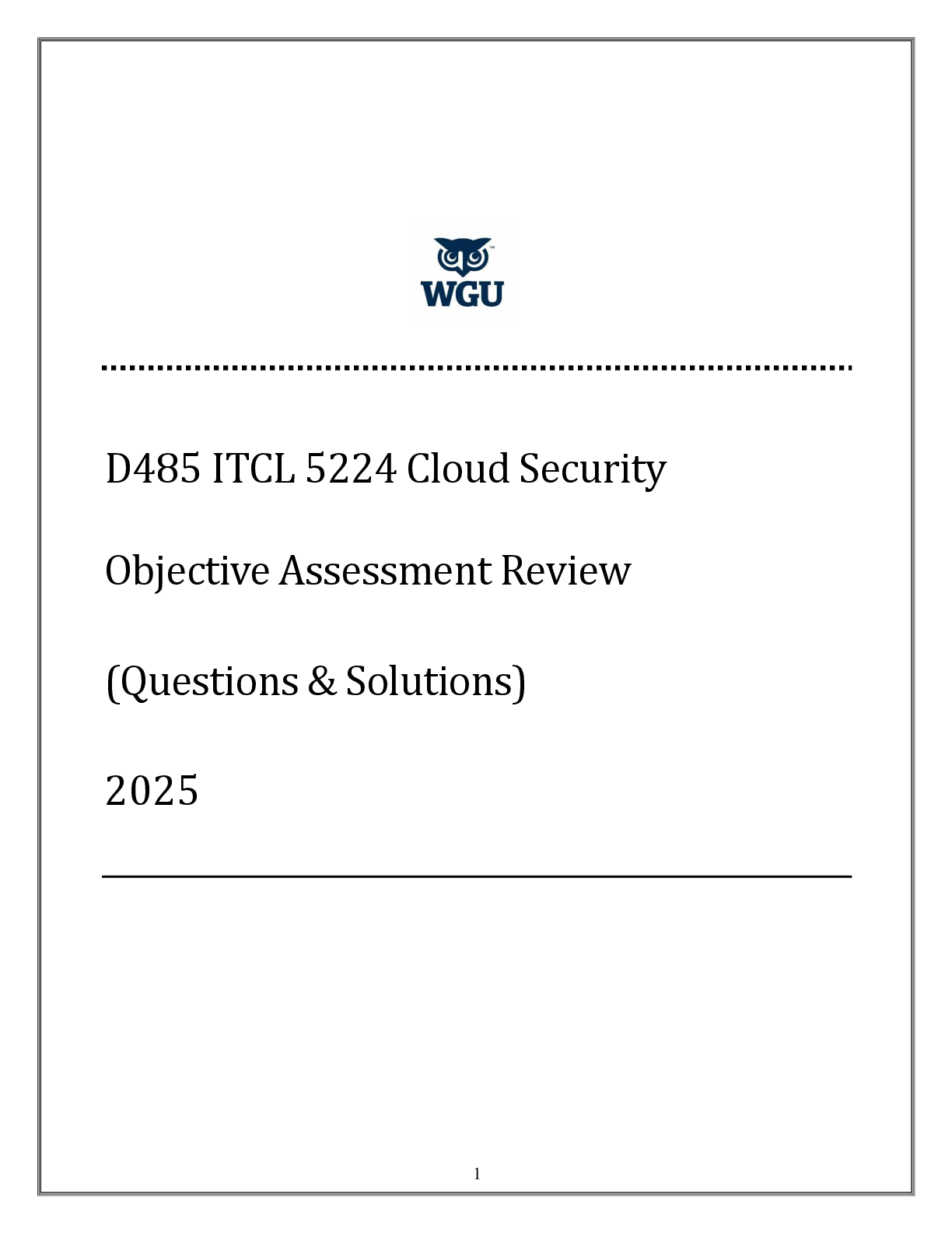 Computer Science > EXAM > D485 ITCL 5224 Cloud Security - OA Review (Qns & Ans) - WGU 2025 (All)