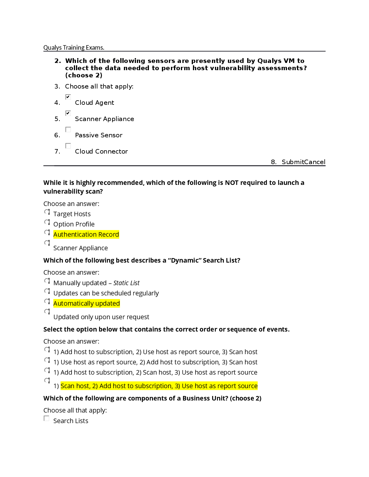 Computer Science > EXAM > WGU Qualys Training Exams — Verified Practice Questions & Answers for Cybersecurity Certification Success (All)