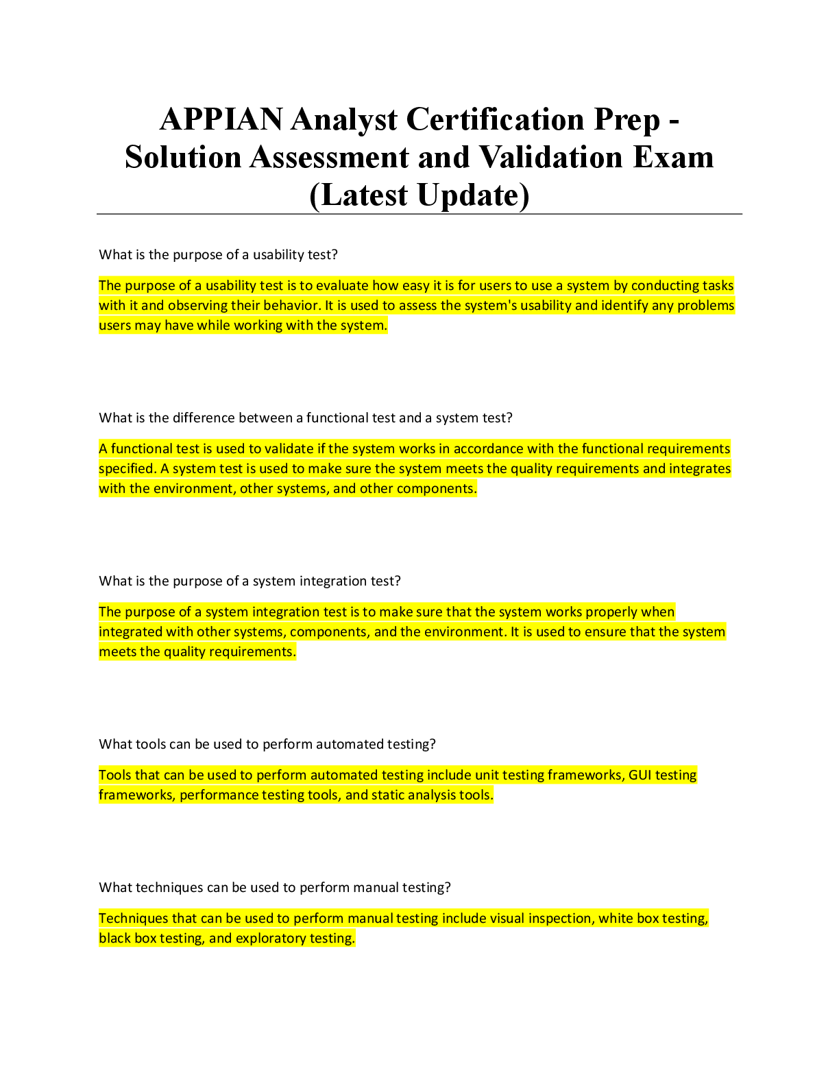 Computer Science > EXAM > Appian Analyst Certification Prep – Solution Assessment and Validation Exam (Latest Update) (All)