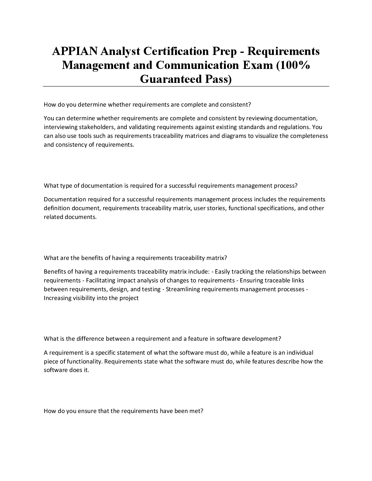 Computer Science > EXAM > Appian Analyst Certification Prep – Requirements Management and Communication Exam (100% Guaranteed Pass) (All)