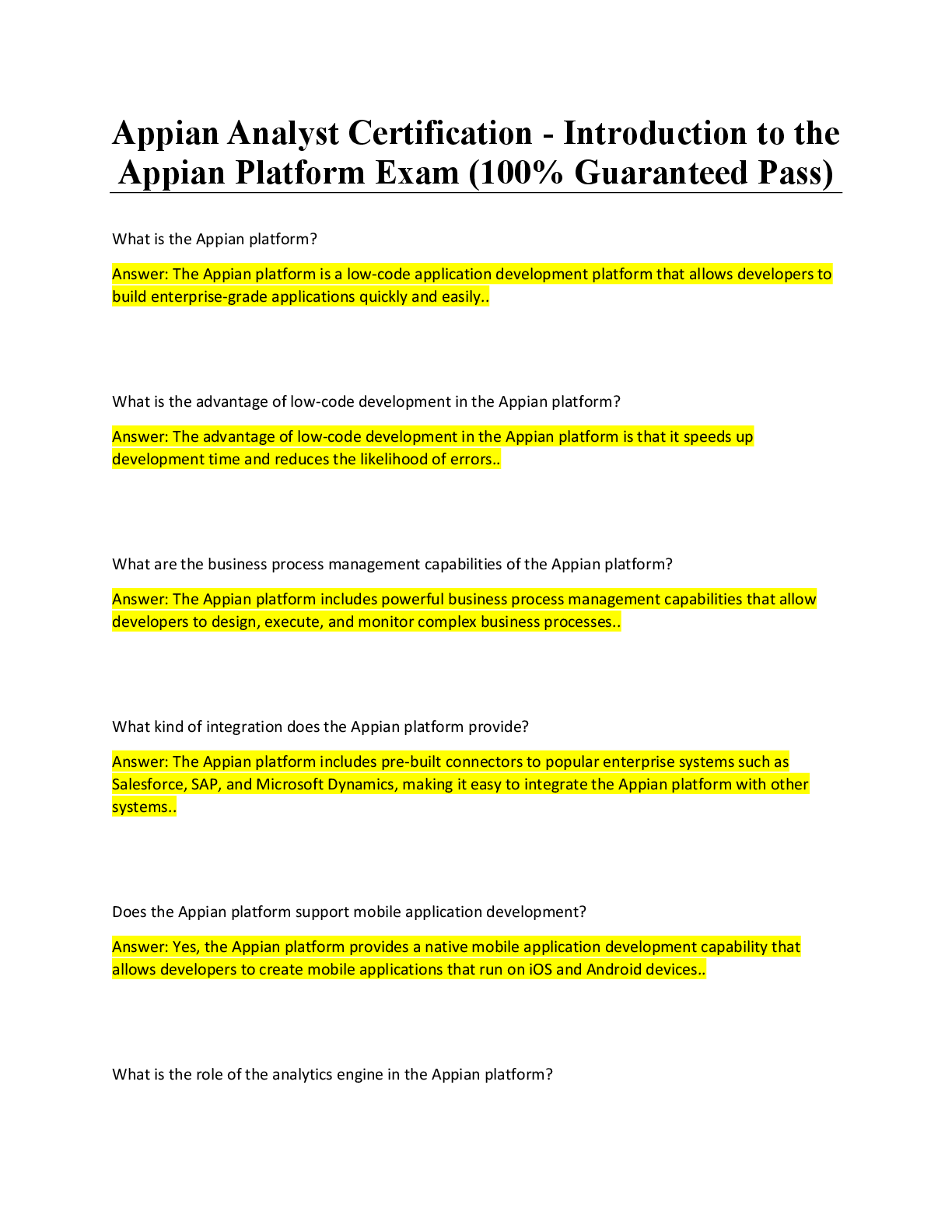 Computer Science > EXAM > Appian Analyst Certification: Introduction to the Appian Platform Exam | 100% Guaranteed Pass (All)