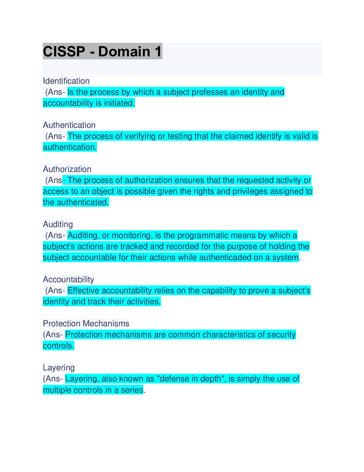 Computer Science > EXAM > CISSP - Domain 1: CISSP - Domain 1 Study Guide: Latest Updated (All)