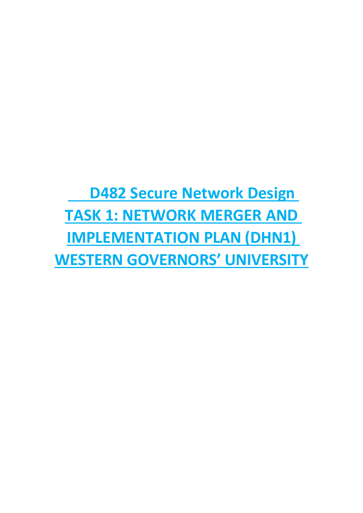 Computer Science > STUDY GUIDE > D482 Secure Network Design TASK 1: NETWORK MERGER AND IMPLEMENTATION PLAN (DHN1) WESTERN GOVERNORS’ UNIVERSITY (All)