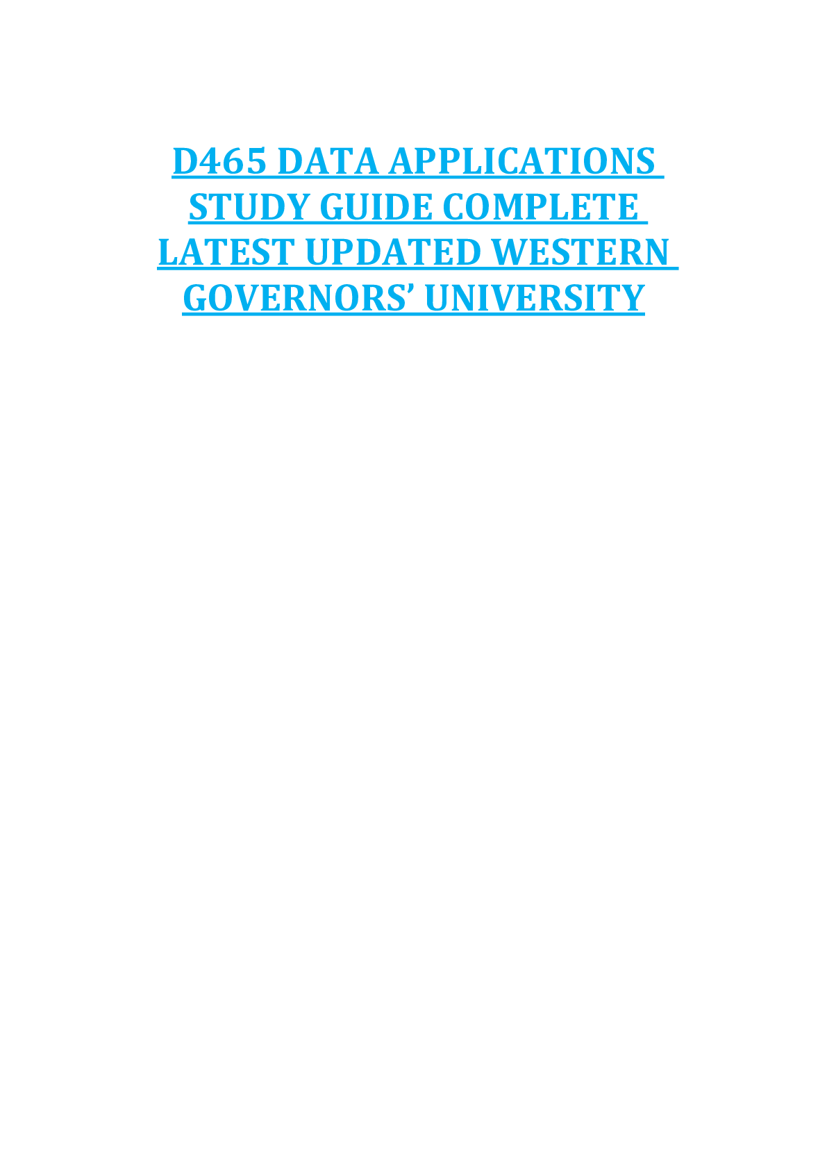 Computer Science > STUDY GUIDE > D465 DATA APPLICATIONS STUDY GUIDE COMPLETE LATEST UPDATED WESTERN GOVERNORS’ UNIVERSITY (All)