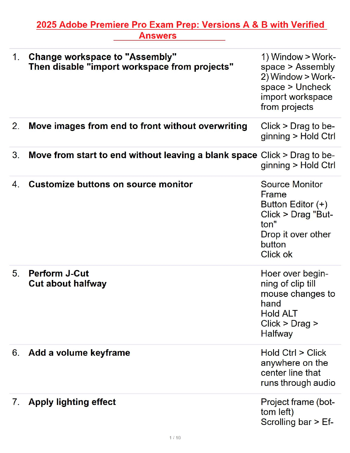 Computer Science > STUDY GUIDE > Adobe Premiere Pro Certification Exam 2025: Complete Prep Guide (Versions A & B) (All)