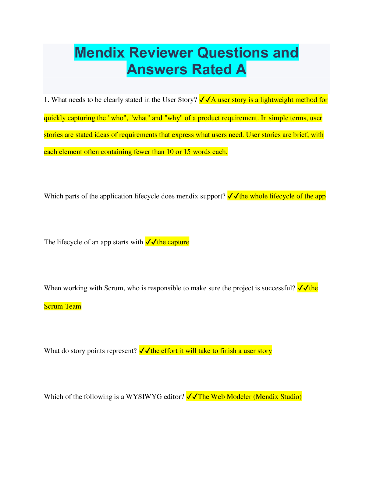 Computer Science > QUESTIONS & ANSWERS > Mendix Reviewer Questions and Answers Rated A (All)