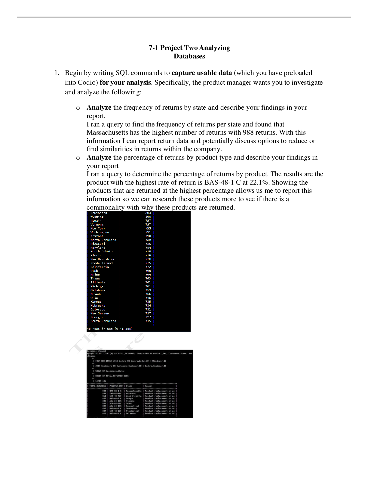 Computer Science > ESSAY > DAD 220 7-1 Project Two: Analyzing Databases (All)