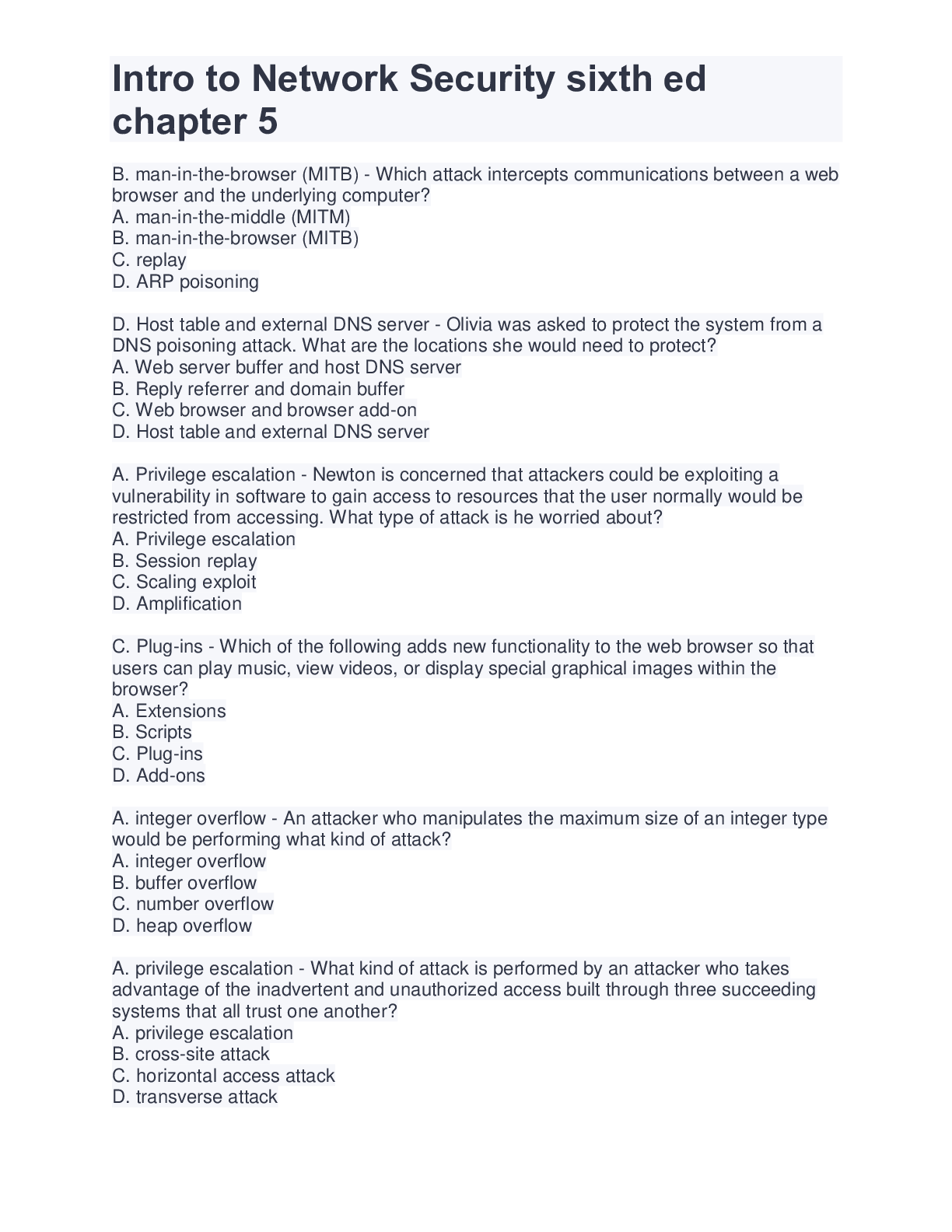 Computer Science > EXAM > Intro to Network Security sixth ed chapter 5 | 42 Questions And Answers (All)