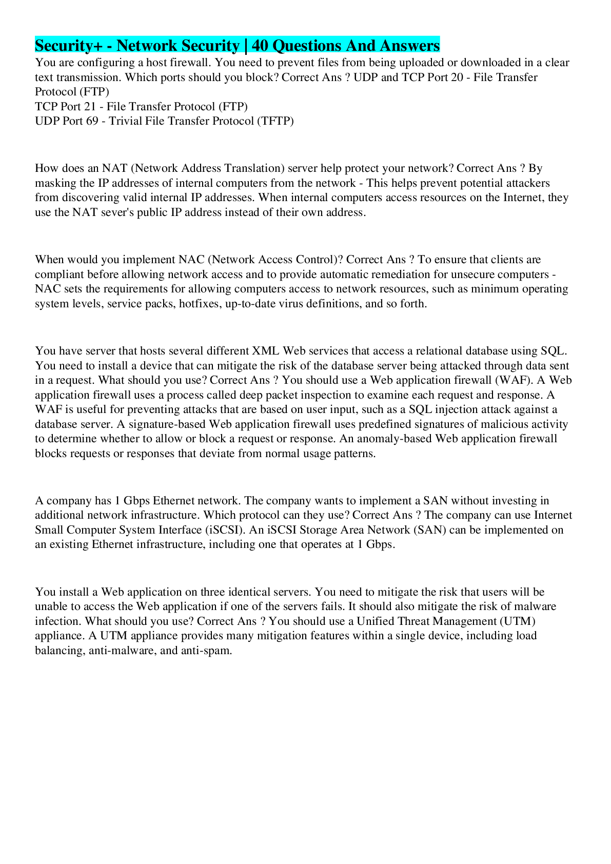 Computer Science > EXAM > Security+ - Network Security | 40 Questions And Answers (All)