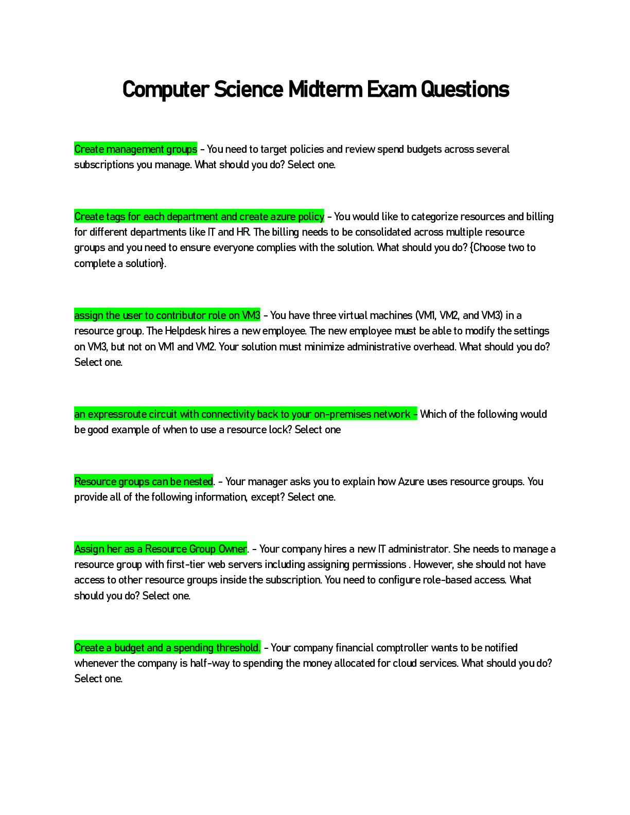 Computer Science > EXAM > New AZ 104 Final Exam Questions and Answers (All)