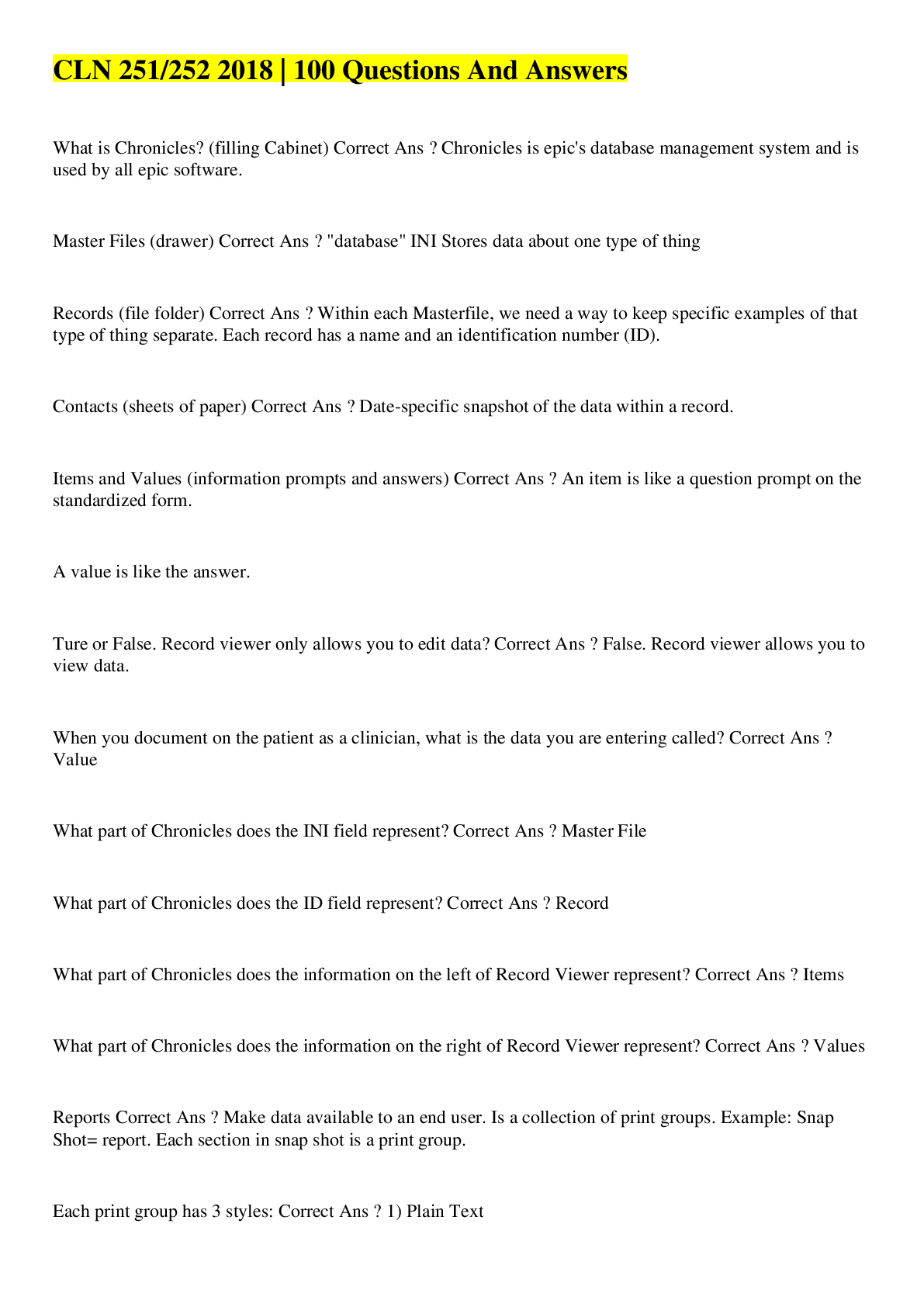 Computer Science > EXAM > CLN 251/252 QUESTIONS AND ANSWERS UPDATED 2022 (All)