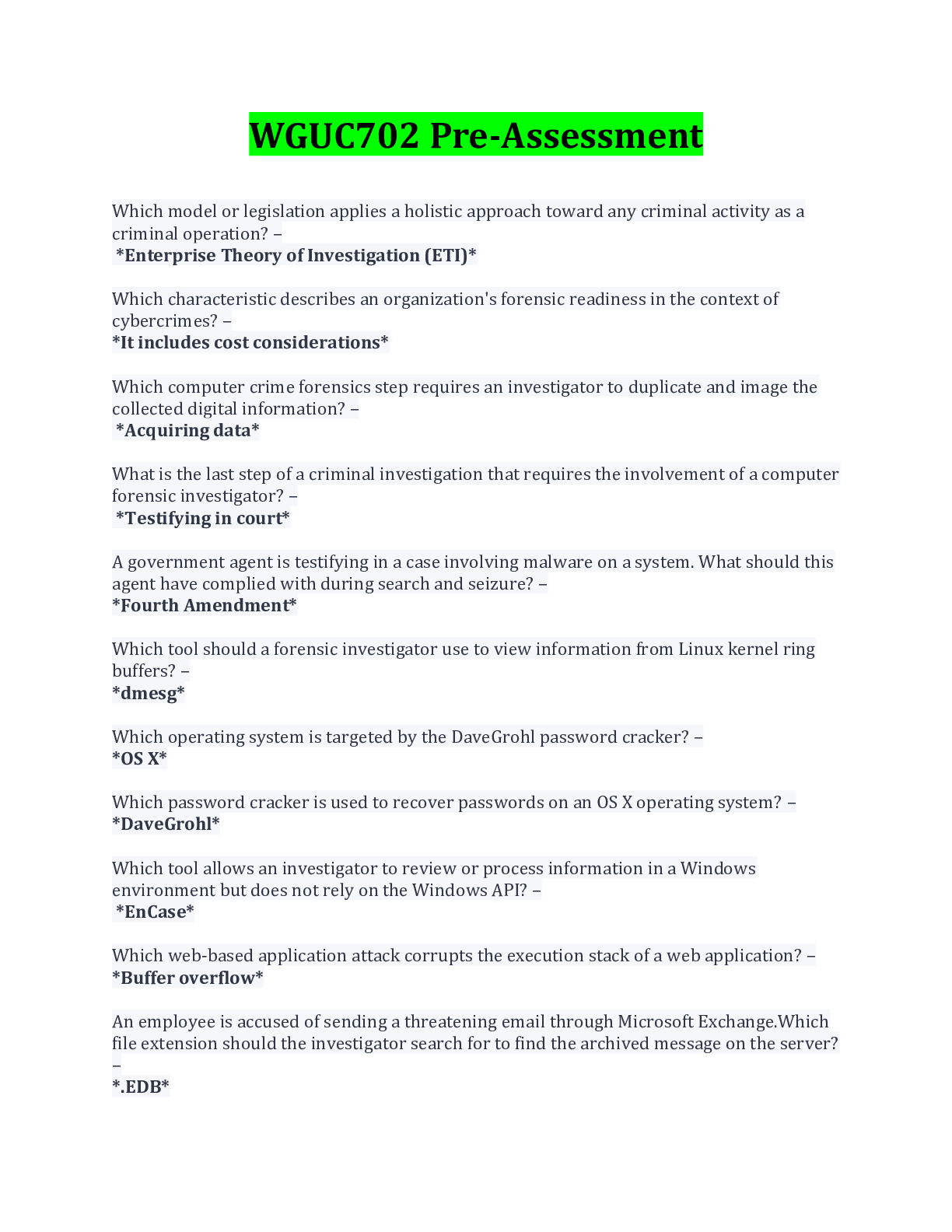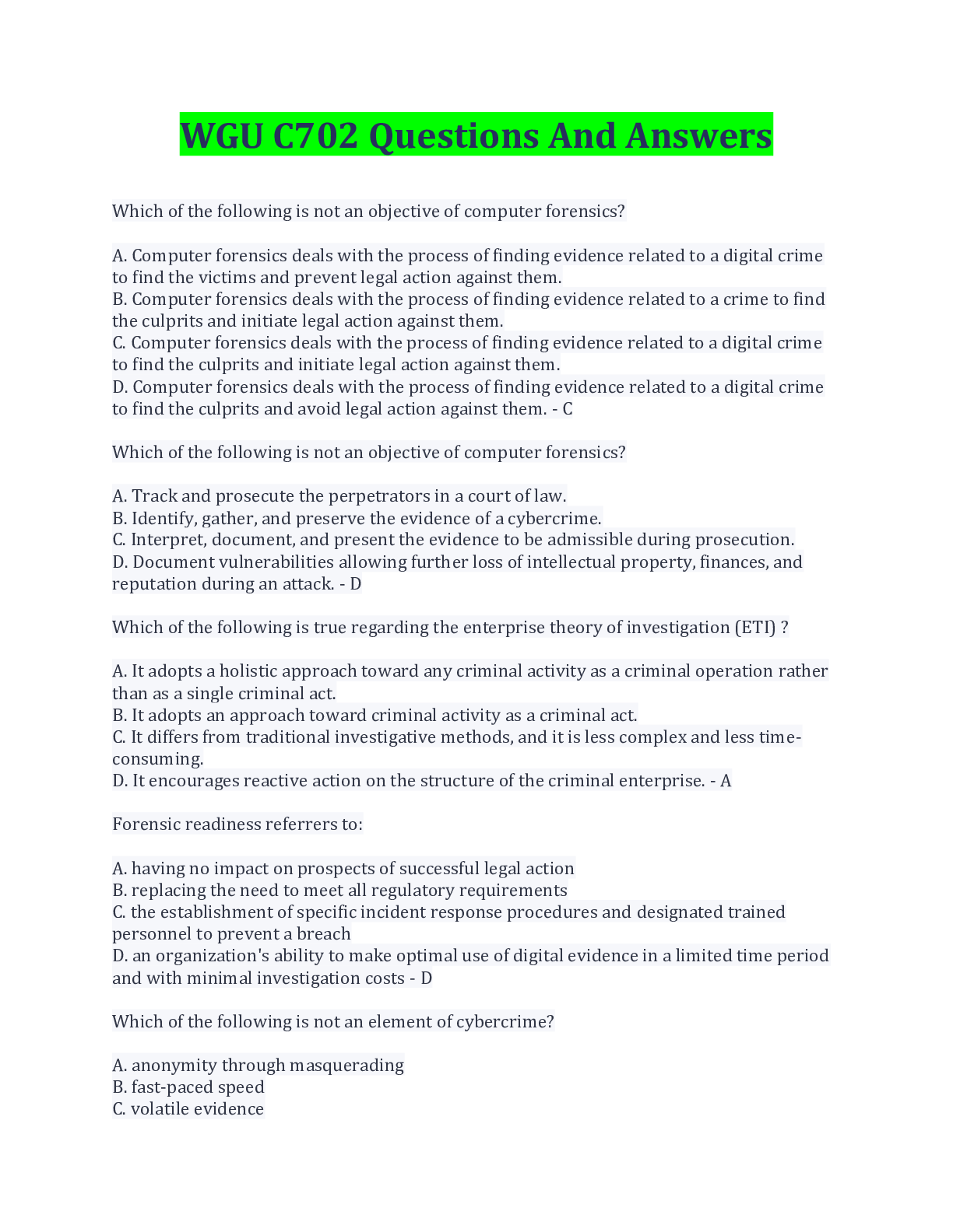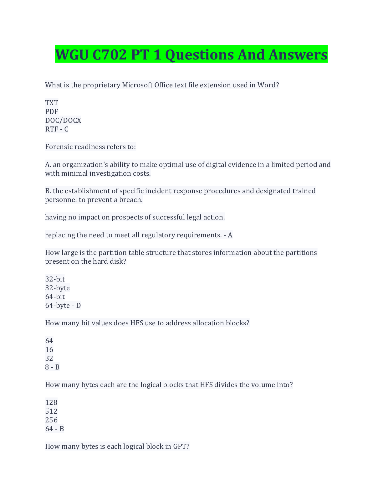 Computer Science > EXAM > WGU C702 CHFI and OA QUESTIONS AND ANSWERS/ LATEST UPDATE COMPLETE TOP SOLUTION RATED A. (All)