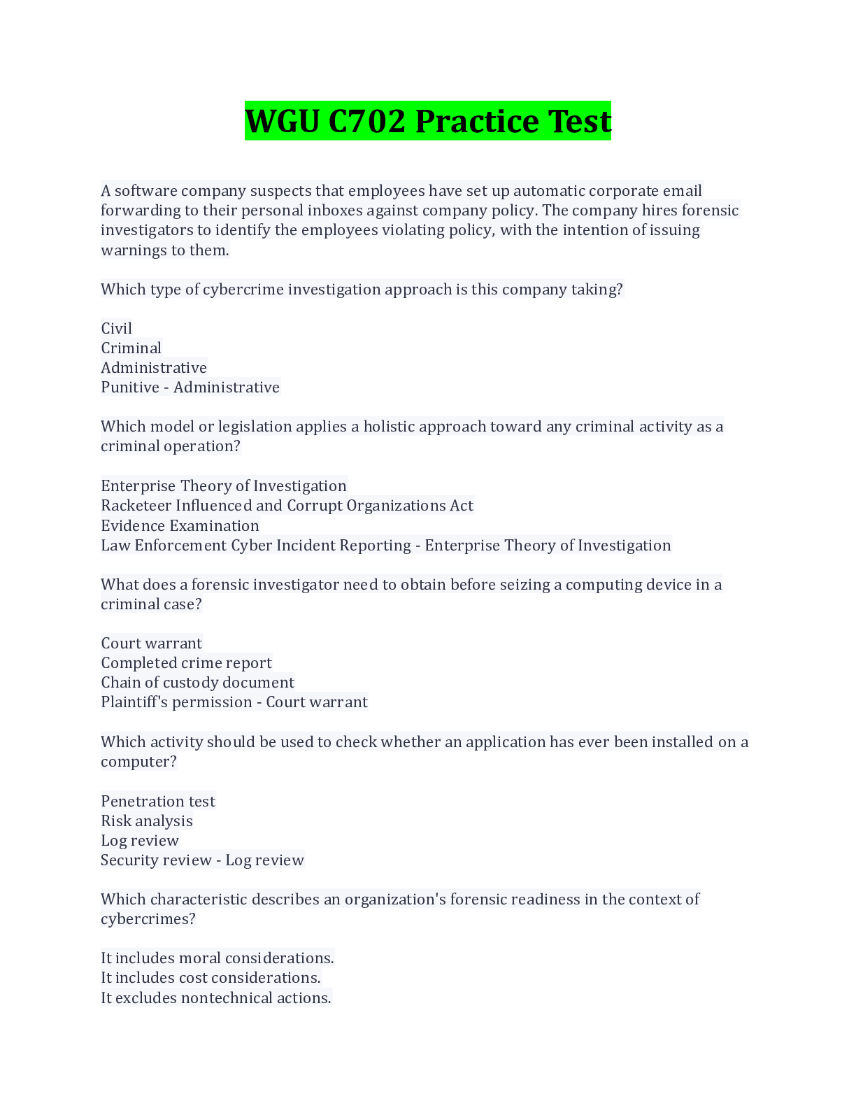 Computer Science > EXAM > WGU C702 Practice Test Questions And Answers Multiple Choices Complete Top Solution /Download To Score A (All)