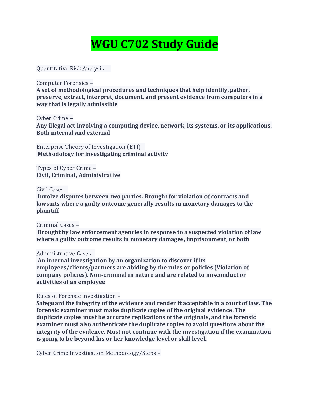 Computer Science > EXAM > WGU C702 Study Guide Terms And Explanation Complete Top Solution Latest Update / Download To get A (All)