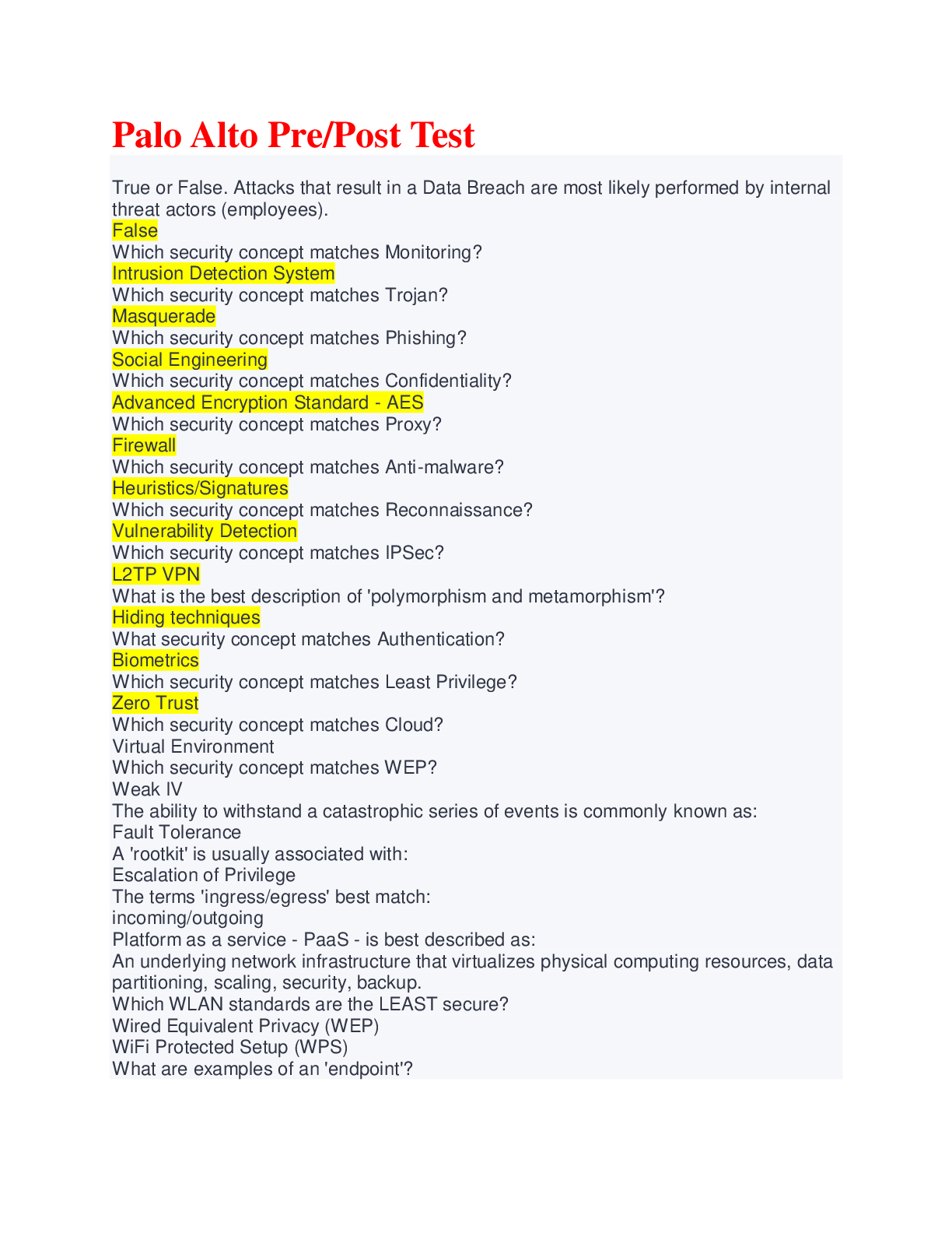 Computer Science > EXAM > Palo Alto Pre/Post Test Questions and Answers Already Graded A (All)